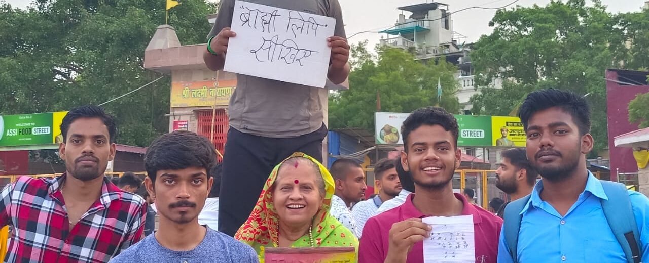 ब्राह्मी लिपि विशेषज्ञा विदुषी डॉ. मुन्नी पुष्पा जैन एवं डॉ. इन्दु जैन राष्ट्र गौरव (दिल्ली) ने नई पीढ़ी को सभी लिपियों की जननी, विश्व की सबसे प्राचीन ब्राह्मी लिपि को सिखाने के उद्देश्य से मां गंगा के अस्सी घाट पर सांयकाल सर्वप्राचीन ब्राह्मी लिपि की कार्यशाला का आयोजन किया। जैनधर्म के प्रथम तीर्थंकर आदिनाथ ने … Continue reading लगती रहेगी ऐसी कार्यशाला : मां गंगा के तट पर बनारस के अस्सी घाट में नई पीढ़ी ने सीखी सर्वप्राचीन ब्राह्मी लिपि