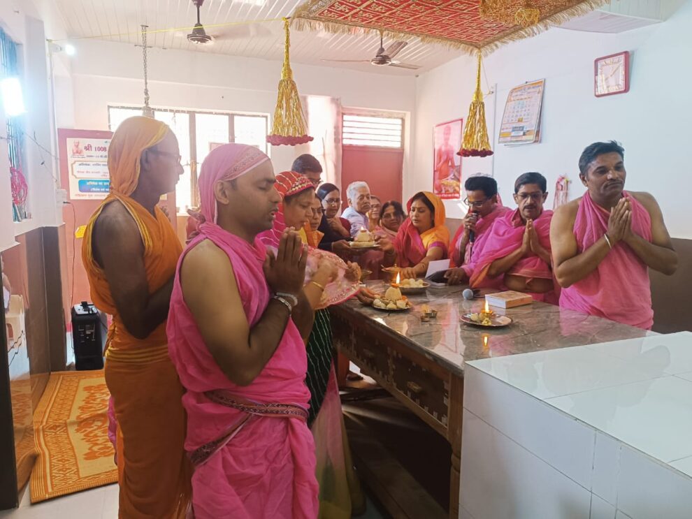 आगरा। पदमप्रभु जिनालय परिवार अवधपुरी के अन्तर्गत वात्सल्य सेवा समिति के तत्वावधान में 21वें तीर्थंकर श्री नमिनाथ भगवान का निर्वाण कल्याणक दिवस शुक्रवार को आगरा के अवधपुरी स्थित नवनिर्मित श्री पद्मप्रभु जिनालय में उत्साहपूर्वक मनाया गया। इसमें भक्तों ने श्रीजी का अभिषेक एवं शांतिधारा की। नमिनाथ भगवान का निर्वाण लाडू चढ़ाने का सौभाग्य अतुल जैन परिवार को प्राप्त हुआ। जिसमें सभी श्रावक- श्राविकाओं ने पंडित विवेक जैन के निर्देशन में निर्वाण कांड का वाचन कर श्रीजी के समक्ष निर्वाण लाडू चढ़ाया। इस अवसर प्रवीन जैन, राकेश जैन, अजय जैन, अनिल जैन, नरेंद्र जैन, रवि जैन, शुभम जैन, रश्मि जैन, कविता जैन, करुणा जैन, पुष्पा जैन, रागिनी जैन सहित अवधपुरी जैन समाज के लोग बड़ी संख्या में सम्मिलित हुए।