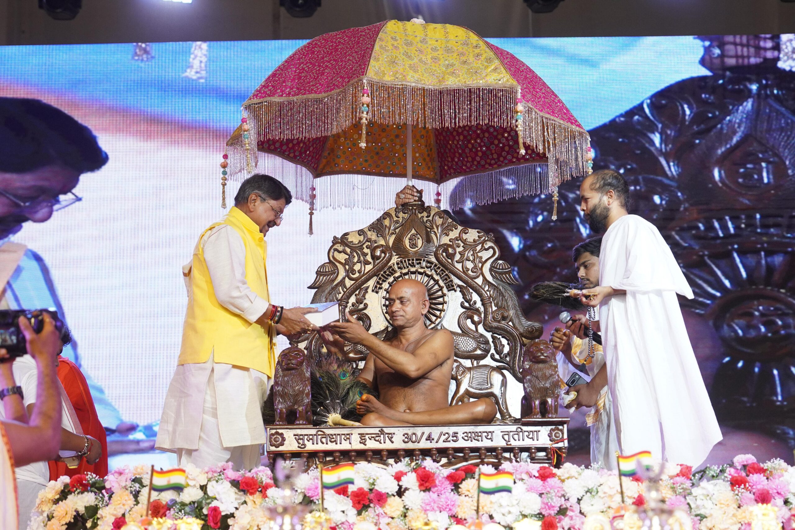 “इंदौर में मैंने इतने साधु-संतों का एक साथ ऐसा भव्य समागम पहले कभी नहीं देखा। यह दृश्य अविस्मरणीय और गौरवपूर्ण है। मां अहिल्या की नगरी आज पुण्यभूमि बन गई है। आज देश में बढ़ती अशांति और हिंसा को संतों की साधना और तप ही रोक सकते हैं। जब तक इस धरती पर पानी और अग्नि हैं, तब तक जिन शासन रहेगा। आप सभी संत समाज को शांति और अहिंसा का मार्ग दिखाएं।”