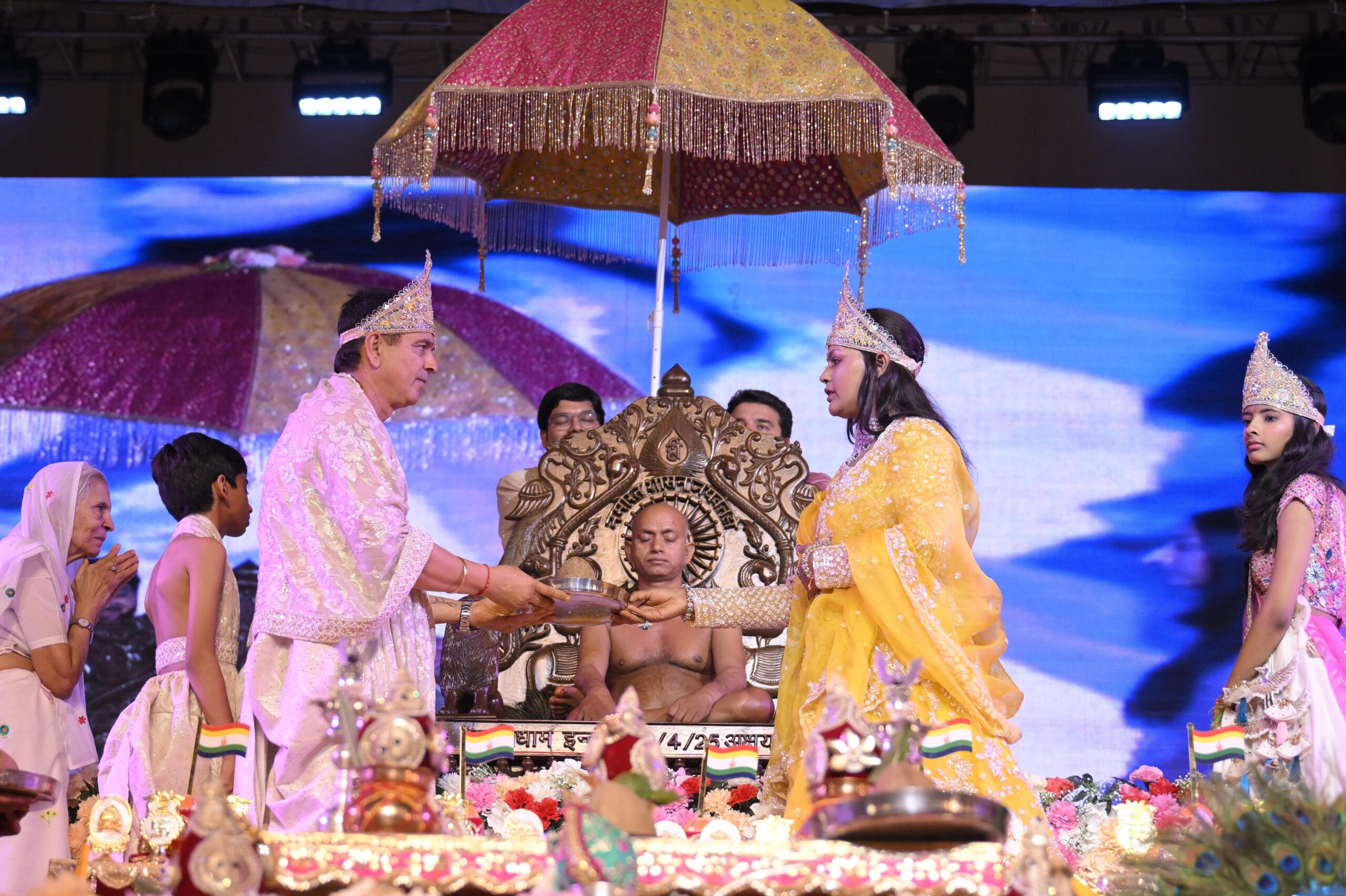 रात्रि में महाआरती, लेजर शो और सम्राट खारवेल नाटिका का भव्य मंचन हुआ, जिसे जैन धर्मालंबियों ने अत्यंत सराहा।