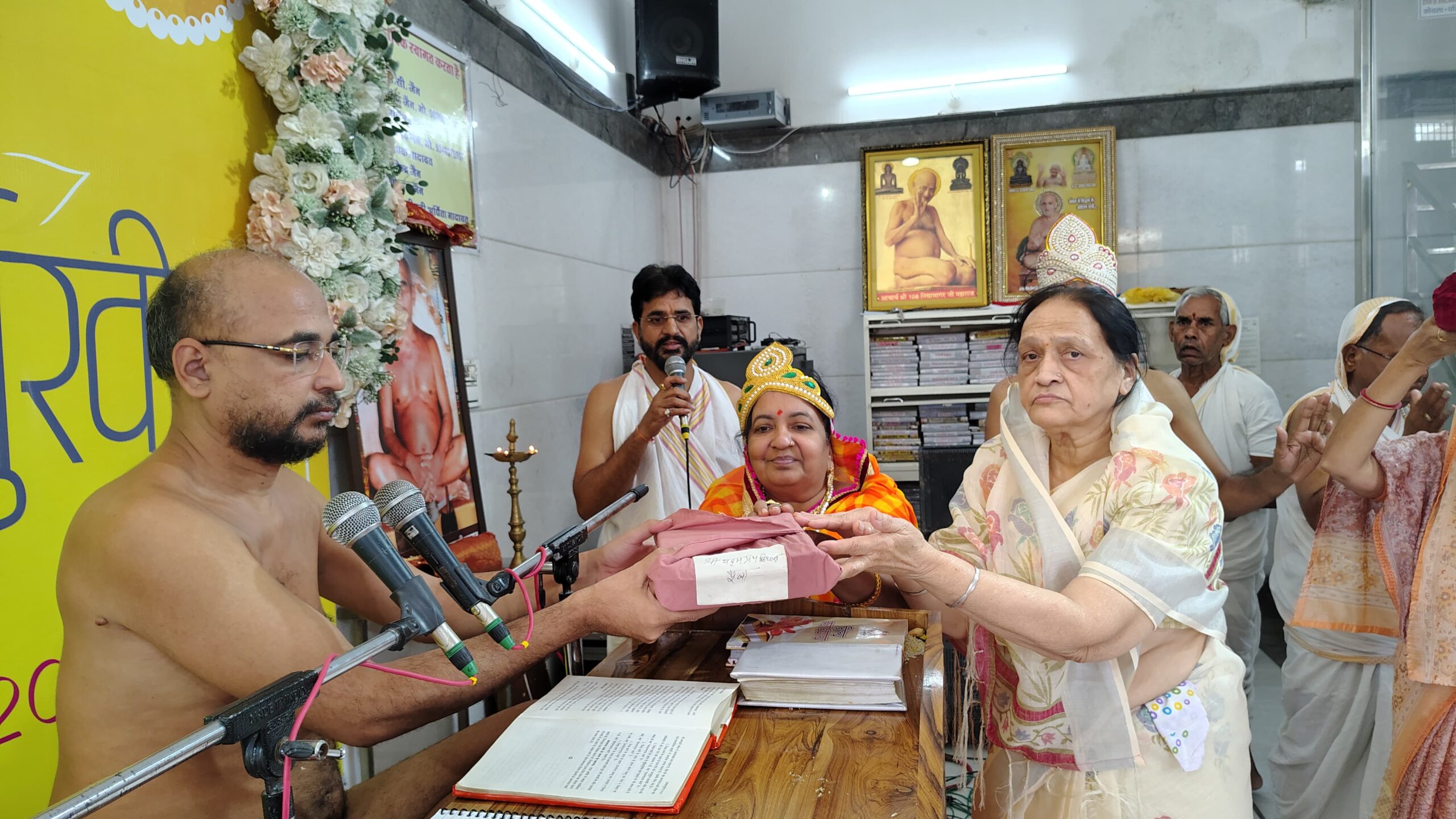 दीप प्रज्वलन, चित्रानावरण और मुनि श्री के पाद प्रक्षालन का लाभ पी.सी. सुषमा जैन परिवार को मिला। शास्त्र भेंट का लाभ उषा जैन और कल्पना जैन परिवार को मिला।