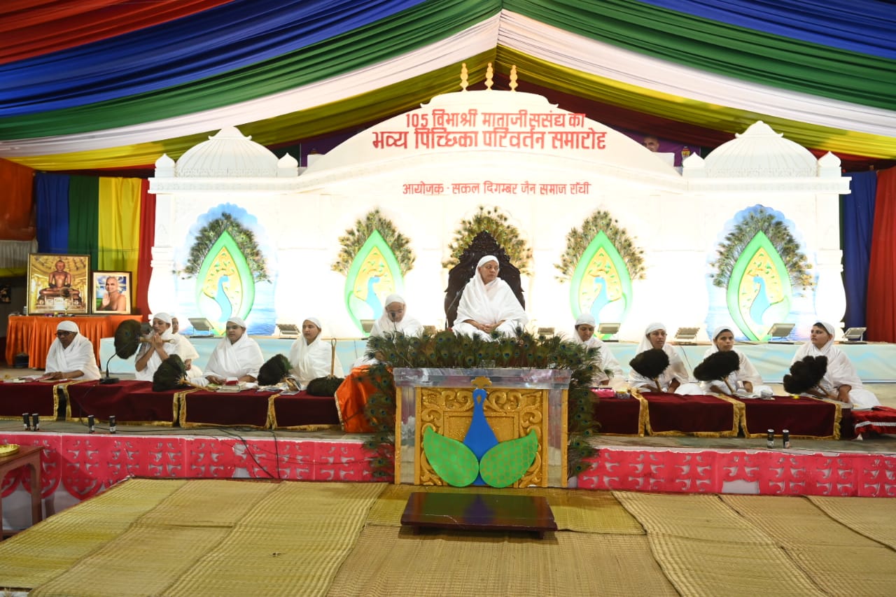 शास्त्र भेंट, पाद प्रक्षालन के बाद पूज्य माताजी की मंगल देशना में उन्होंने कहा कि पांच महीने के दौरान रांची जैन समाज ने जिस तरह सभी कार्यों को उत्साह और उमंग के साथ धर्म प्रभावना की, वह सराहनीय है। सर्व प्रथम पिच्छिका भेंट करने वाले और पुरानी पिच्छिका लेने वाले त्याग को संकल्पित होते हैं। जैन धर्म में पिच्छिका का बड़ा महत्व है। इसके बिना जैन में कोई मुनि नहीं हो सकता। माताश्री ने कहा कि यह उपकरण (पिच्छी एवं कमंडल) जैन साधु एवं साध्वियों का पहचान चिह्न है। इनमें से पिच्छी यदि किसी कारणवश छूट जाती है या गुम हो जाती है तो जैन साधु एक कदम भी आगे नहीं बढ़ाता है क्योंकि इससे जीवों की हिंसा का दोष लगता है। इसलिए इसका महत्व है। समारोह में माताश्री को नई पिच्छिका प्रदान की गई। समारोह के पश्चात् आर्यिका श्री ससंघ का मंगल विहार पारसनाथ की ओर दोपहर तीन बजे हुआ। अपर बाजार जैन मन्दिर होते हुए कचहरी रोड करमटोली होते हुए रात्रि विश्राम बरियातू स्थित पेबल वे में हुआ। प्रातः आहार चर्या के बाद आगे की यात्रा होगी।