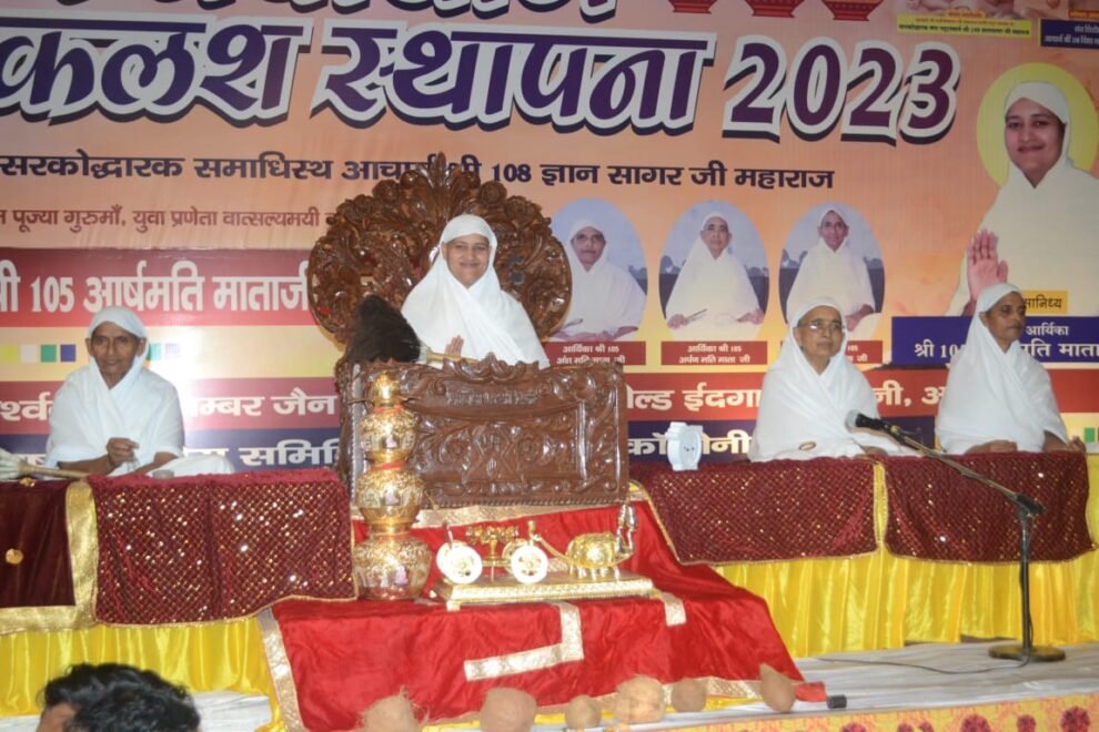 ज्ञानार्ष वर्षायोग समिति ओल्ड ईदगाह कालोनी के तत्वावधान में परम पूज्यनीय गणिनी आर्यिका श्री आर्षमति माता जी ससंघ का पावन वर्षायोग मंगल कलश स्थापना समारोह एवं गुरु पूर्णिमा महोत्सव सोमवार को आगरा के प्रतापपुरा चौराहा स्थित द रमाना ग्रांड में धूमधाम के साथ उत्साह पूर्वक आयोजित हुआ। पढ़िए शुभम जैन की रिपोर्ट…
