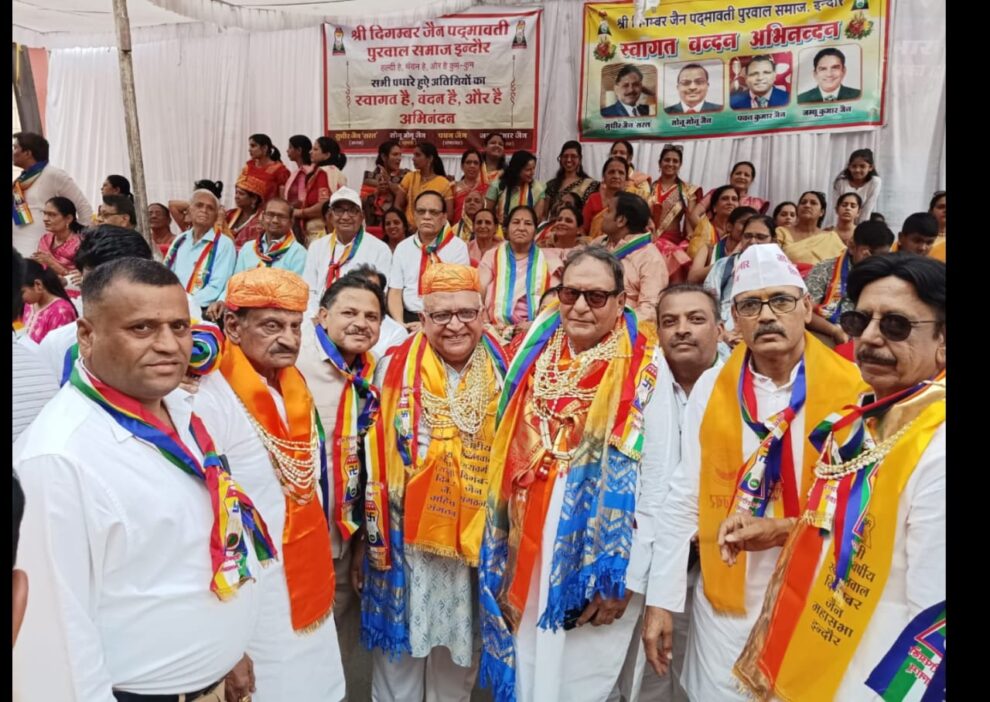 इंदौर। पद्धमावती पुरवाल समाज क्षेत्रीय समिति की कार्यकारणी ने इस बार भी भगवान महावीर जन्म कल्याणक महोत्सव के अवसर पर राजवाड़ा स्थित बैंक के पास स्टेज से नगर की समस्त मंडलियों और झांकियों की शोभायात्रा में शामिल श्रद्धालुओं और समाजजनों का केशरिया दुपट्टे से स्वागत किया।