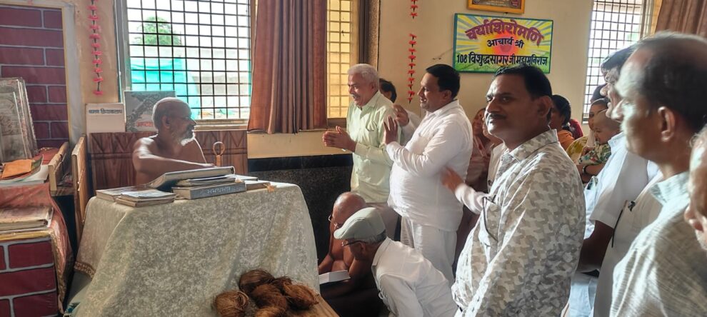 भिंड। गोलालारिय समाज सेवा समिति भिंड एंव पावई अतिशय क्षेत्र प्रबंधन समिति के सभी पदाधिकारी सोमवार को नगर के श्रद्धालुओं के साथ आचार्य श्री विशुद्ध सागर जी महाराज ससंघ के दर्शन के लिए पहुंचे। उनको अतिशय क्षेत्र रत्नात्रय गिरि पावई में पंचकल्याणक महा महोत्सव सानिध्य के लिए विरागोदय तीर्थं क्षेत्र पहुंचकर चर्चा की। आचार्य श्री से चर्चा कर तिथि निर्धारित करने का निवेदन किया। जिस पर आचार्य श्री का अति व्यस्त कार्यक्रम होने के कारण 2026 के चातुर्मास बाद पंचकल्याणक होने के संकेत दिए।