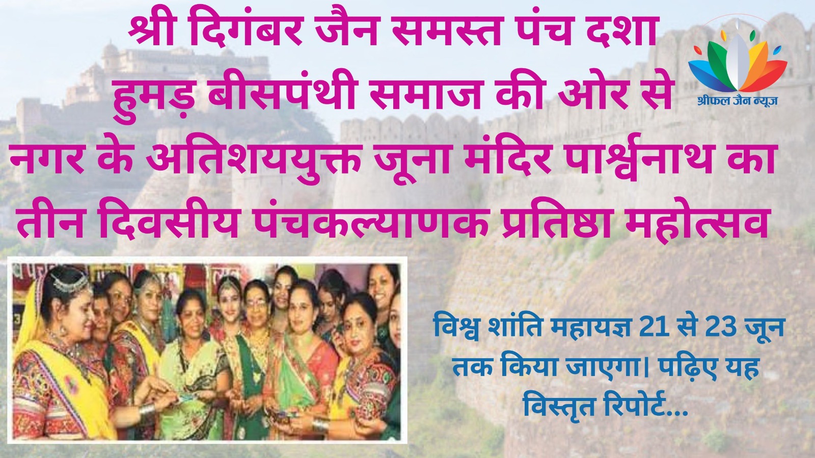 कुशलगढ़। श्री दिगंबर जैन समस्त पंच दशा हुमड़ बीसपंथी समाज की ओर से नगर के अतिशययुक्त जूना मंदिर पार्श्वनाथ का तीन दिवसीय पंचकल्याणक प्रतिष्ठा महोत्सव और विश्व शांति महायज्ञ 21 से 23 जून तक किया जाएगा। समाज में मंदिर के नव निर्माण का भाव होने से बंशी पहाड़पुर के पत्थरों से मंदिर का जीर्णोद्धार किया गया है। इस जूना मंदिर में पार्श्वनाथ भगवान के साथ-साथ महावीर स्वामी, बाहुबली भगवान की प्रतिमाओं को मूलनायक स्थल पर विराजमान करने लिए चतुर्थ पट्टाधीश प्राकृताचार्य सुनील सागरजी के शिष्य मुनि शुभसागरजी व मुनि सूक्ष्म सागरजी के सानिध्य में 21 से 23 जून तक प्रतिष्ठा महोत्सव होगा। प्रतिष्ठाचार्य पंडित विनोद पगारिया विरल होंगे।