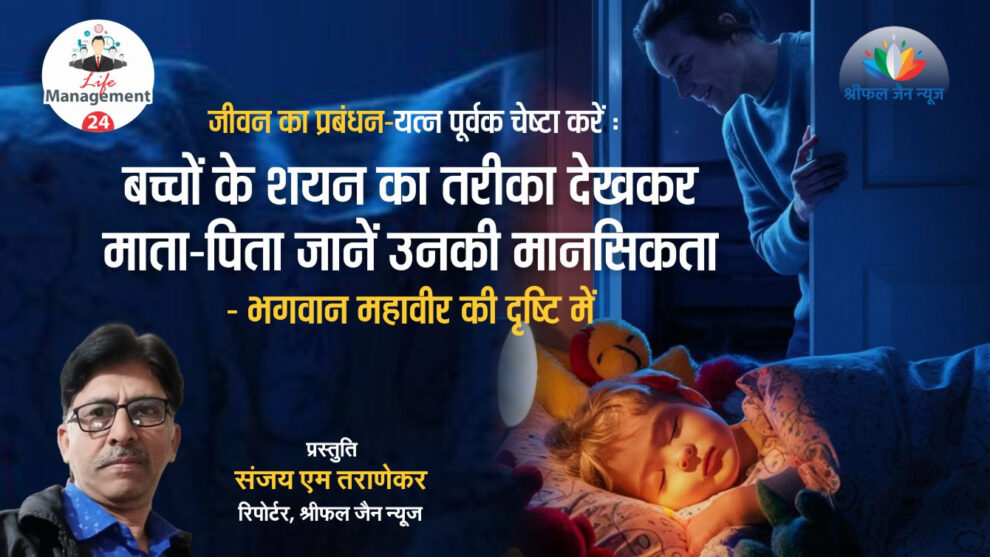 माता-पिता को यह ध्यान रखना चाहिये कि वे स्वयं तो शयन का सही तरीका अपनाये। साथ ही अपने बच्चों के शयन करने के तरीके पर भी ध्यान दें। उनकी गतिविधियॉ किस तरह की है इस पर नजर अवश्य ही रखें। दिए गए तरीकों को ध्यान रख उनका पालन करने हेतु बच्चों को सीख हमेशा देते रहें। मुनि श्री प्रणम्य सागर जी महाराज की पुस्तक खोजो मत पाओ व अन्य ग्रंथों के माध्यम से श्रीफल जैन न्यूज का कॉलम Life Management निरंतरता लिए हुए है। पढ़िए इसके 24वें भाग में श्रीफल जैन न्यूज के रिपोर्टर संजय एम तराणेकर की विशेष रिपोर्ट….