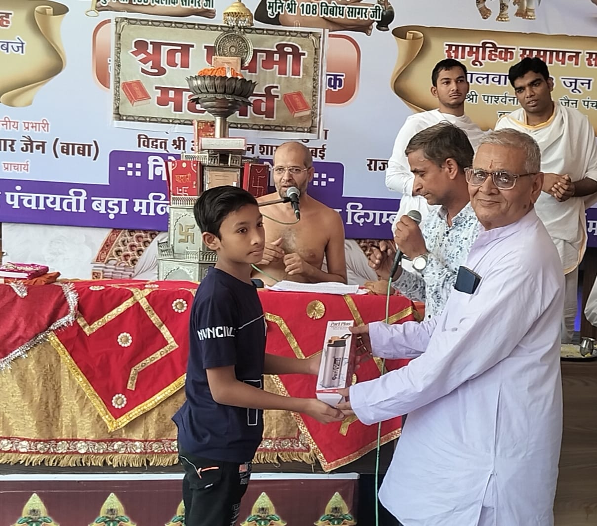 नगर के महावीर पुरा में सिसोदिया गली में निवासरत अंश गुप्ता पुत्र विपिन गुप्ता ने भी इस प्रतियोगिता में भाग लिया। अजैन होते हुए भी इस बालक ने 100 में से 59 अंक प्राप्त किए। युगल मुनिराज ने इस बच्चे को धर्मवृद्धि का आशीर्वाद देते हुए विशेष पुरस्कार द्वारा इस बालक का बहुमान किया गया।