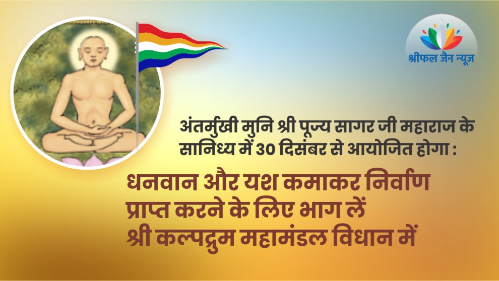 श्री कल्पद्रुम महामंडल विधान समिति की ओर से आचार्य श्री अभिनंदन सागर महाराज जी से दीक्षित, आचार्य श्री वर्धमान सागर महाराज से शिक्षित अंतर्मुखी मुनि श्री पूज्य सागर जी महाराज एवं क्षुल्लक श्री अनुश्रमण सागर जी महाराज के सानिध्य में आगामी 30 दिसंबर से 7 जनवरी तक श्री दिगम्बर जैन नव ग्रह मंदिर ग्रेटर बाबा परिसर में श्री कल्पद्रुम महामंडल विधान का आयोजन किया जाएगा। पढ़िए यह विशेष रिपोर्ट…