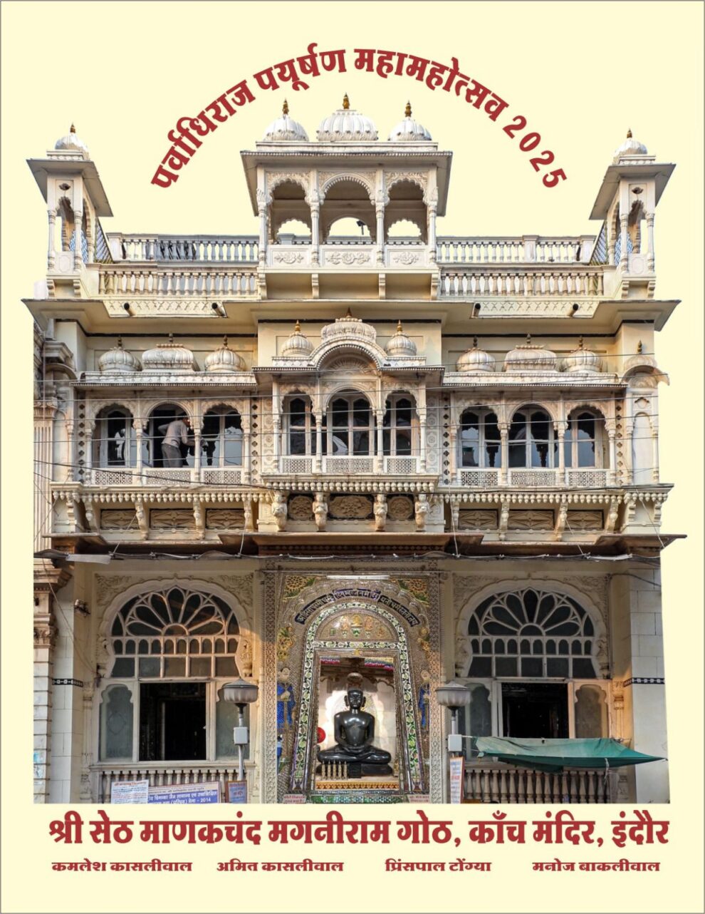 इंदौर स्थित राष्ट्रीय ऐतिहासिक काँच मंदिर आगामी पर्युषण पर्व के अवसर पर आस्था और श्रद्धा का केंद्र बनने जा रहा है। 28 अगस्त, गुरुवार को 48 रजत दीपकों की मंगल ज्योति प्रज्वलित कर इस भव्य आयोजन का शुभारंभ होगा। इस अवसर पर प्रसिद्ध समाजसेवी मुकेश पी. जैन एवं उनकी टीम भक्ताम्बर पाठ का विस्तृत विश्लेषण प्रस्तुत करेंगे। काँच मंदिर कमेटी अध्यक्ष कमलेश कासलीवाल, ट्रस्टी अमित कासलीवाल एवं पुष्पा कासलीवाल, सामाजिक संसद अध्यक्ष राजकुमार पाटोदी, दिगम्बर जैन सोशल ग्रुप फ़ेडरेशन के राष्ट्रीय अध्यक्ष मनोहर झांझरी, कार्यक्रम संयोजक प्रिंसपाल टोंगिया, मनोज बाकलीवाल, समाज के महामंत्री सुशील पांड्या, रीजन अध्यक्ष प्रदीप चौधरी, मनीष गंगाजल, रितेश पाटनी, अजयपाल टोंगिया, विजय कासलीवाल, आशीष सूतवाले, ऋषभ जैन, संजय पापड़ीवाल और प्रदीप गंगवाल ने संयुक्त रूप से समाज के सभी सदस्यों से इस धार्मिक उत्सव में सहभागिता का आग्रह किया है।