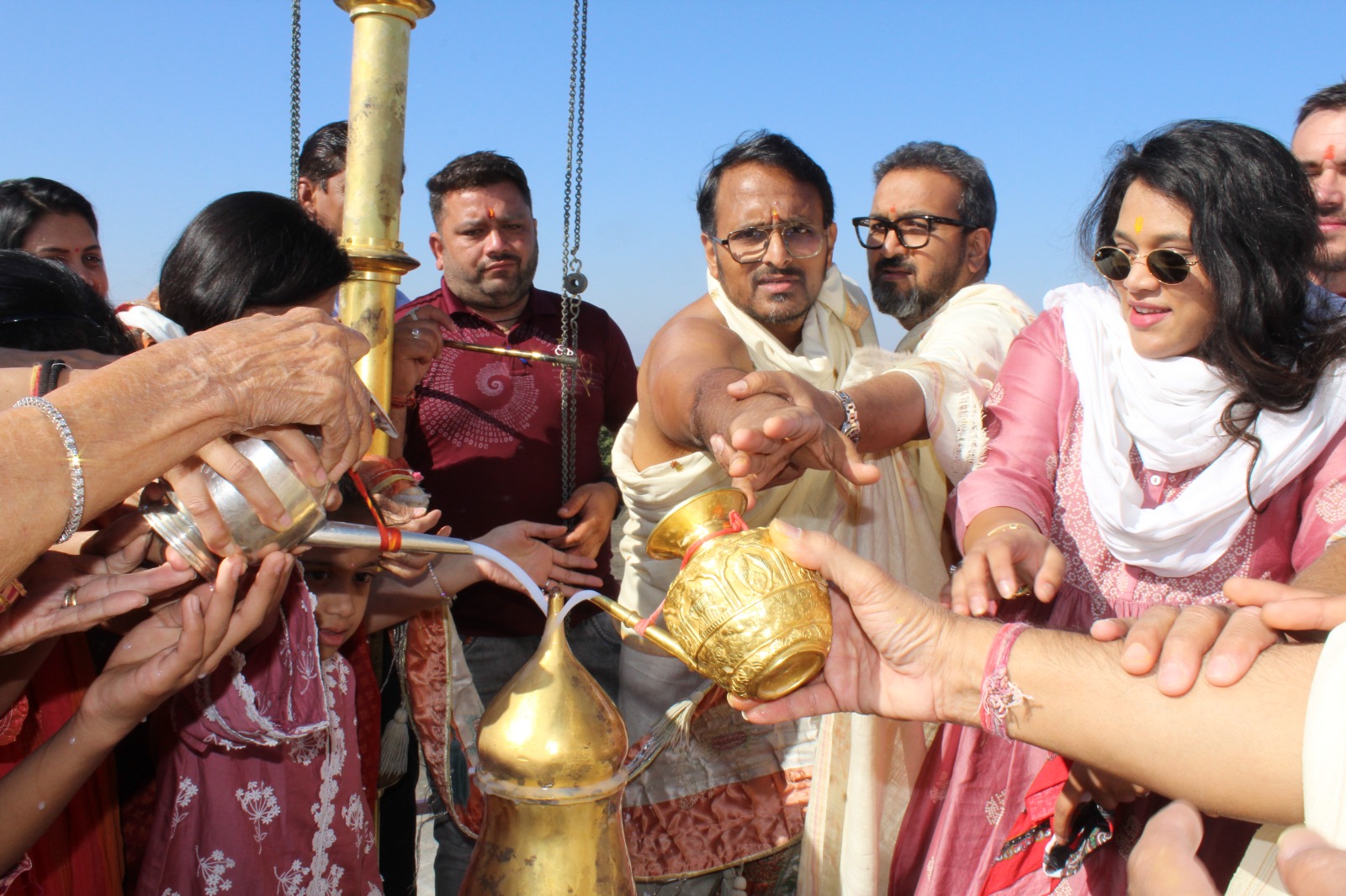 कार्यक्रम में ध्वजा का वरघोड़ा चतुर्विद संघ के साथ निकाला गया जिसमें डायमंड ट्रेडिंग उधोग,लंदन के निदेशक श्री फिलिप व मार्केटिंग हेड सेम्युल व पूर्व केबिनेट मंत्री एम एस बिट्टा शामिल हुए । इस दौरान निकाली गई वरघोड़ा में महिलाएं ध्वजा लेकर मंगल गीत गा रही थी । मूलनायक श्री शंखेश्वर पार्श्वनाथ जिनालय पर पावापुरी ट्रस्ट के चेयरमैन किशोर भाई संघवी , लंदन से आये डायमंड ट्रेडिंग कम्पनी के निदेशक फिलिप,श्रीमती रतन बेन बाबुलालजी ,व एम एस बिट्टा ने तथा महावीर स्वामी जल मंदिर पर कीर्ति भाई ,नितिन भाई,दिलीप भाई व लंदन से आये अतिथि सेम्युल ने दंड कलश की पूजा कर ध्वजा फहराई ।