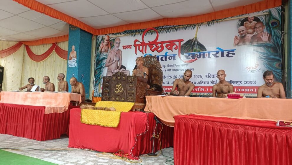 ललितपुर के अभिनंदनोदय तीर्थ पर आचार्य श्री निर्भयसागर महाराज ससंघ के सानिध्य में पिच्छिका परिवर्तन का दिव्य संयम संस्कार आयोजन सम्पन्न हुआ, जिसमें श्रावकों ने व्रत धारण कर गुरु चरणों से पुरानी पिच्छिका ग्रहण की। पढ़िए पूरी रिपोर्ट…