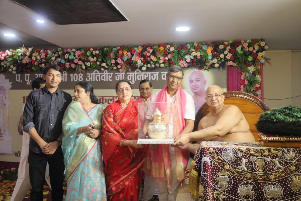 आचार्य श्री के करकमलों में नवीन मयूर पिच्छिका भेंट करने का परम सौभाग्य निपुण जैन सपरिवार (अशोक विहार फेज-2) को प्राप्त हुआ। आचार्य श्री ने अपनी पुरानी पिच्छी परम गुरुभक्त प्रभुदयाल जैन सपरिवार (अशोक विहार फेज-1) को प्रदान कर धन्य किया। गुरुभक्तों द्वारा आचार्य श्री की अष्ट-द्रव्य से सुसज्जित थाल से विशेष पूजन किया गया। चातुर्मास के मुख्य कलश प्राप्तकर्ता परिवारों में प्रमोद जैन ‘महावीरा’, सुभाष जैन और प्रभुदयाल जैन के नाम शामिल हैं, जिनके साथ अन्य मंगलकारी कलश प्राप्तकर्ता परिवारों को भी आचार्य श्री द्वारा कलश प्रदान किए गए। समारोह में दिल्ली-एनसीआर के अलावा रेवाड़ी, तिजारा, गुरुग्राम, गाजियाबाद, फरीदाबाद, सोनीपत, रोहतक, मेरठ, बड़ौत जैसे विभिन्न नगरों से हजारों गुरुभक्तों ने सम्मिलित होकर धर्मलाभ प्राप्त किया।