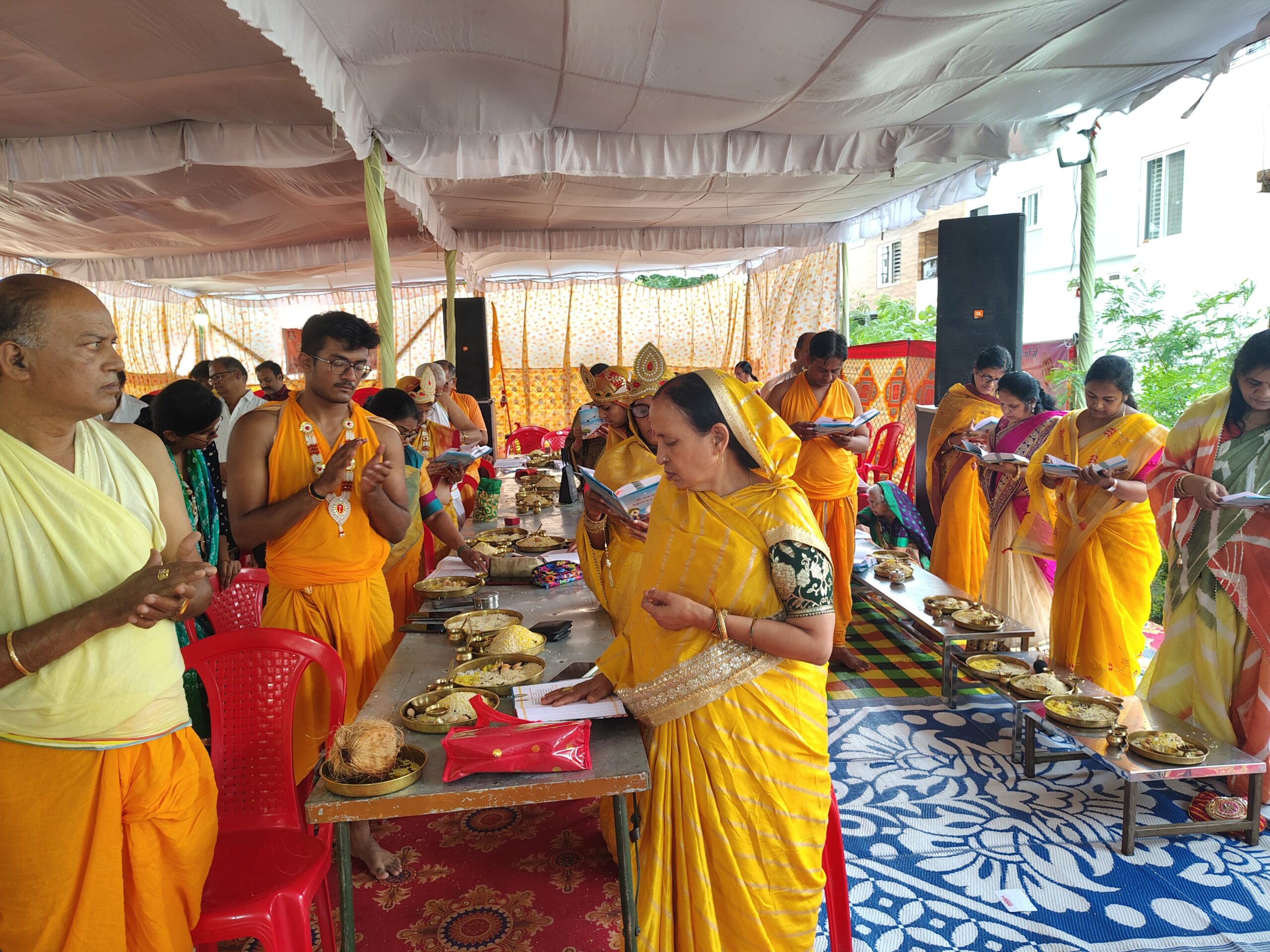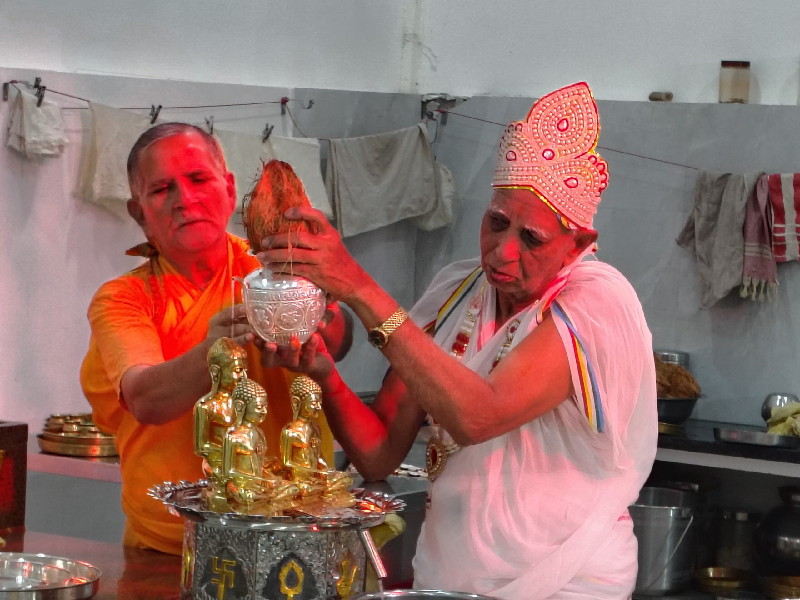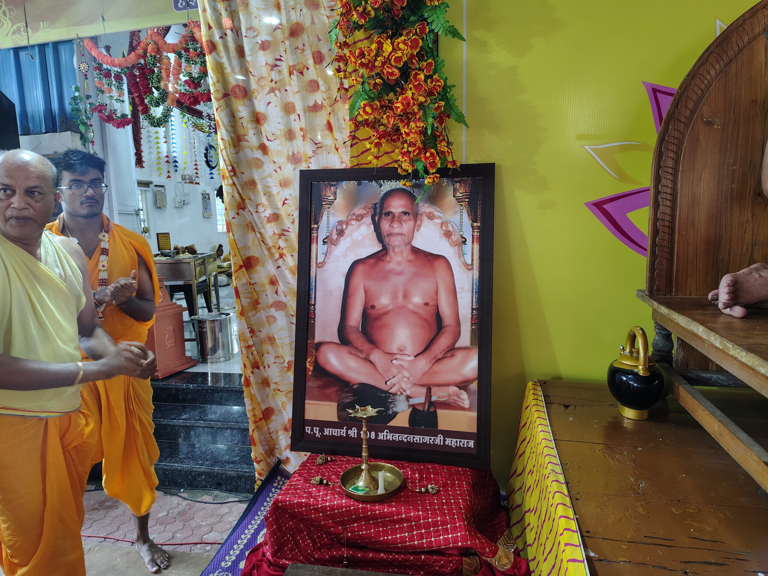 तत्पश्चात नित्य नियम पूजन के साथ भक्तामर महामंडल विधान में आज कुल 29 काव्यों के साथ 1624 अर्घ्य समर्पित किए गए। आचार्य अभिनंदन महाराज के चित्र अनावरणकर्ता व दीप प्रज्वलनकर्ता राकेश कविता सार्थक जैन रहे। अंतर्मुखी परम पूज्य मुनि श्री पूज्य सागर जी महाराज के पाद पक्षालन व शास्त्र भेंट का सौभाग्य सुशीला, रेखा कोटिया परिवार और राकेश, कविता, सार्थक जैन परिवार को प्राप्त हुआ।