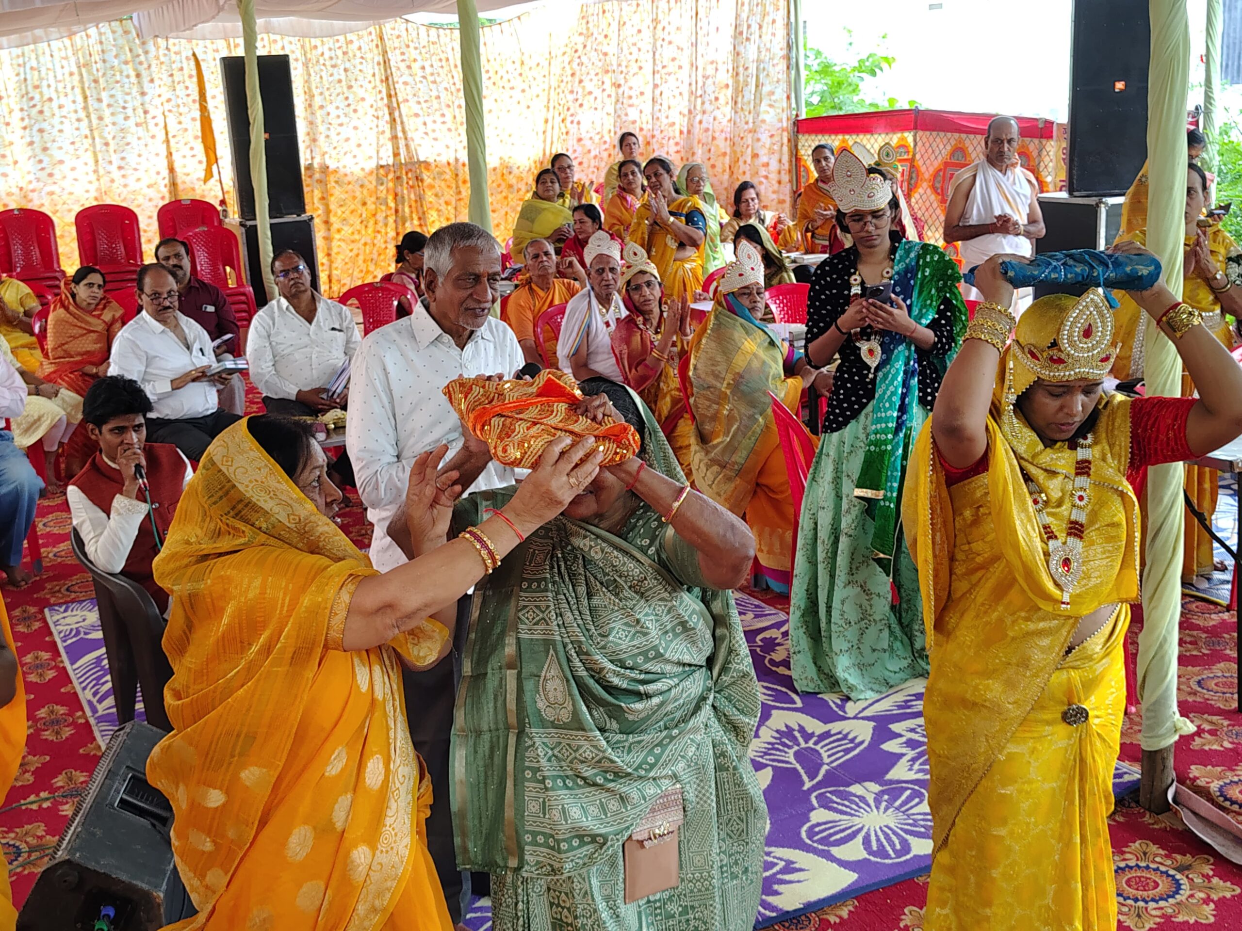 उन्होंने कहा कि जिस प्रकार से हम हमारे घरों में भगवान को एक कोने में टांग देते हैं उसी तरह से आज हमारे बच्चे धर्म का ज्ञान ना लेते हुए पाश्चात्य संस्कृति को अपना रहे हैं। जब महाराजजी आए, पयुर्षण पर्व आए तो धोती पहन ली।