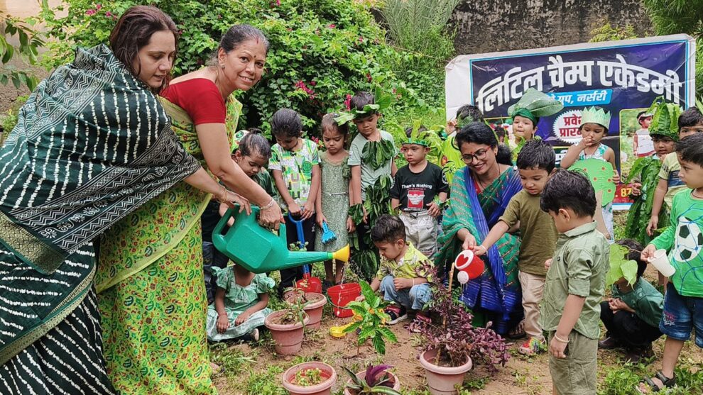 उन्होंने पौधरोपण के बारे में जानकारी देते हुए पौधरोपण कराया। अध्यापिका उमंग जैन, ईना गंगवाल, पूजा ने बच्चों से 15 पौधे लगवाए। पर्यावरण के प्रति बच्चों का उत्साह देखने लायक था। सभी बच्चे हरी पत्तियों की पोशाक पहनकर आए और उन्होंने पौधों की सार-संभाल की जिम्मेदारी ली।