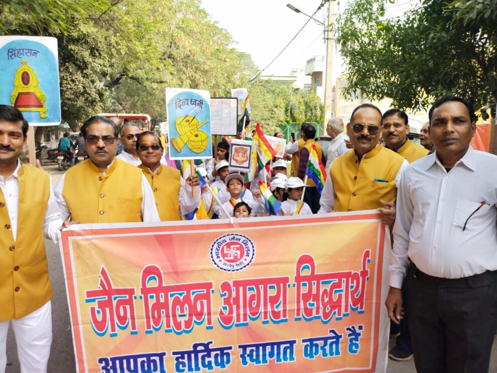 आगरा। श्री शान्तिनाथ दिगम्बर जैन मन्दिर सेक्टर 7, आवास विकास कॉलोनी, सिकंदरा में भगवान महावीर के 2550वें निर्वाण महोत्सव के उपलक्ष्य में एक प्रभात फेरी का आयोजन किया गया। प्रभात फेरी का आयोजन जैन मिलन सिद्धार्थ के माध्यम से किया गया। भगवान महावीर के संदेशों वाली तख्तियां लिए महिलाएं, पुरुष एवं बच्चे उत्साहपूर्व चल रहे थे l प्रभात फेरी में राष्ट्रीय संयुक्त मंत्री वीर अनिल आदर्श जैन, मंदिर अध्यक्ष राजेश बेनारा, मिलन अध्यक्ष वीर विजय निमोरब जैन, मंत्री वीर अतुल जैन, वीर सतीश जैन, वीरा पारस जैन, वीरा रचना जैन, वीरा हेमलता जैन, वीरा बेबी जैन, वीर प्रदीप जैन, वीर राजेंद्र जैन, वीर पवन जैन, राष्ट्रीय उपाधीक्ष वीर विमलेश, वीर हुकुम जैन, वीर दिलीप जैन आदि विशेष रूप से उपस्थित रहे l