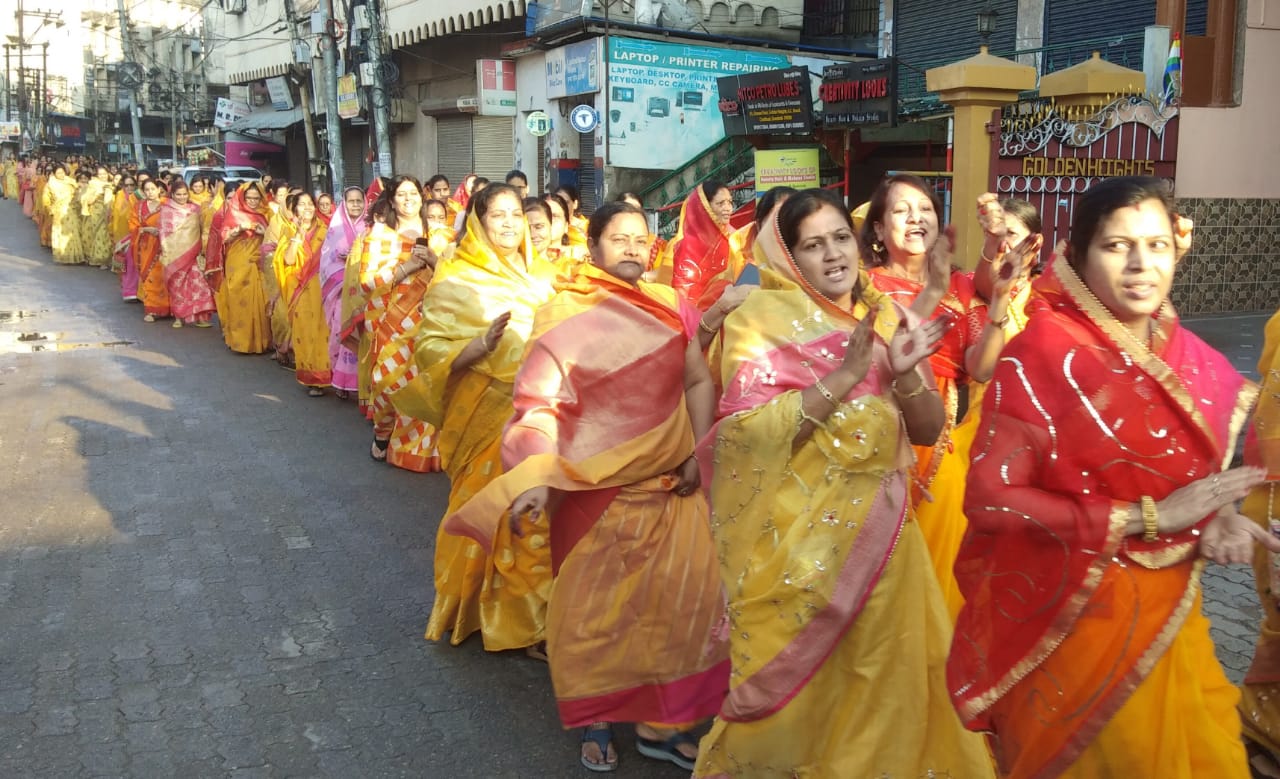 गुवाहाटी। हर वर्ष की भांति इस साल भी भगवान महावीर जन्मकल्याण के उपलक्ष्य में एक दिन पूर्व विभिन्न कार्यक्रमों का आयोजन किया गया। रविवार से शुरू दो दिवसीय महोत्सव के पहले दिन पुखराज पांड्या के संयोजन में स्थानीय फैंसी बाजार स्थित श्री दिगंबर जैन बड़ा मंदिर से सुबह छह बजे से प्रभात फेरी निकाली गई जिसमें बड़ी संख्या में शक्कर जैन समाज की महिलाओं पुरुषों और बच्चों ने हिस्सा लिया। प्रभात फेरी नगर के विभिन्न मार्गो से होते हुए महावीर भवन धर्मस्थल पहुंची। इस अवसर पर सुरेश कुमार बाकलीवाल व संजय गंगवाल के संयोजन में अल्पाहार की व्यवस्था की गई, जिसमें बड़ी संख्या में समाज के लोगों ने प्रसाद ग्रहण किया।