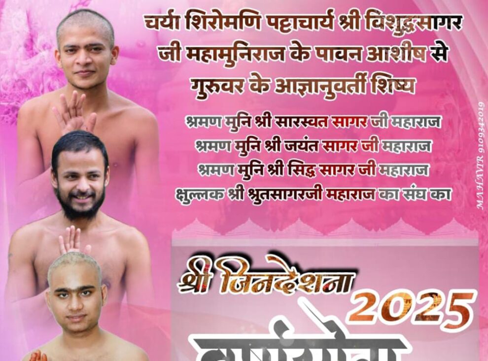 नांद्रे। नांद्रे में पट्टाचार्य विशुद्धसागर जी के शिष्य सारस्वत सागर जी, जयंत सागर जी, सिद्ध सागर जी और श्रुतसागर महाराज जी का नांद्रे में होनेवाला है। 2025 का चौमासा और मुनिराजों की चरणरज से नांद्रे की भूमि पवित्र होगी। श्री विशुद्धसागर जी के शिष्यों के आगमन को लेकर नांद्रे के जैन समाज एवं नगर के लोगों में काफी उत्साह है। श्री महावीर दिगंबर जैन मंदिर के अध्यक्ष जिनेश्वर पाटील, सेक्रेटरी सुधीर चौधरी, अनिल पाचोरे, निखिल पाटील, वीर सेवा दल नांद्रे, वीर महिला मंडळ, पार्श्व महिला परिषद, जैन युवा मंच के युवा पदाधिकारी, प्रभावणा समिति के कार्यकर्ता, श्रावक-श्राविकाओं के मुनिराजों का इंदौर से नांद्रे तक विहार और 2025 के चातुर्मास को सफल करने के लिए प्रयास शुरु हैं। विशुद्धसागर महाराज जी के शिष्य सारस्वत सागर जी, जयंत सागर जी, सिद्ध सागर जी और श्रुतसागर महाराज जी का इंदौर से बारामती-विटा-तासागांव से नांद्रे तक 800 किमी का पद विहार शुरु है।