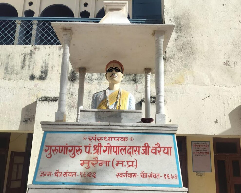 मुरैना। जैन संस्कृत महाविद्यालय मुरैना के संस्थापक पंडित गोपालदास वरैया की जन्म जयंती 30 मार्च को मनाई जाएगी। श्री गो.दि. जैन संस्कृत विद्यालय मुरैना के प्राचार्य पंडित चक्रेश जैन शास्त्री ने जानकारी देते हुए बताया कि गुरुनाम गुरु गोपालदास वरैया ने आज से लगभग 123 वर्ष पूर्व मुरैना नगर में एक विद्यालय की स्थापना की थी। उनके द्वारा स्थापित विद्यालय आज एक वटवृक्ष का रूप ले चुका है और श्री गोपाल दिगंबर जैन संस्कृत विद्यालय, मुरैना के नाम से संपूर्ण भारतवर्ष में अपनी पताका फहरा रहा है। विगत वर्षों की भांति इस वर्ष भी विद्यालय परिवार पूज्य गुरुनाम गुरु पंडित गोपालदास वरैया की जयंती 30 मार्च को संस्कृत विद्यालय के प्रांगण में मनाई जा रही है। इस अवसर पर पूर्व में विद्यालय से शिक्षा प्राप्त विद्वान पंडित अरविंदकुमार जैन शास्त्री गुलगंज (रुड़की) को सम्मानित किया जायेगा।