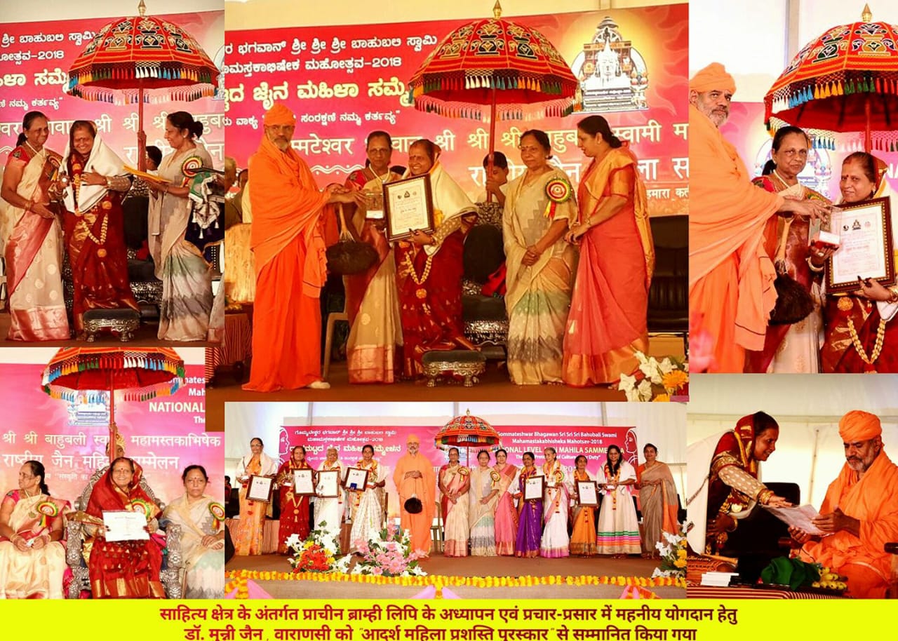 कार्यक्रमों के इसी क्रम में अखिल भारतीय महिला सम्मेलन का भी आयोजन किया गया, जिसमें पूज्य स्वामी जी ने अन्य विदुषी महिलाओं के साथ हमारी मां डॉ. मुन्नी जैन जी को भी ब्राह्मी लिपि के अध्ययन-अध्यापन तथा प्रचार-प्रसार में महत्त्वपूर्ण योगदान हेतु ‘आदर्श महिला प्रशस्ति पुरस्कार’ से सम्मानित किया। आपने बड़ी बहन डॉ. इन्दु जैन राष्ट्र गौरव को नवीन संसद के भूमिपूजन में प्राकृत गाथाओं के सस्वर पाठन हेतु हर्ष व्यक्त कर आशीर्वाद दिया, जो कि पूरे देश में चर्चा का विषय बना। हमने महामस्तकाभिषेक में जलाभिषेक करने का भी सौभाग्य प्राप्त किया। इस प्रकार अनेक कार्यक्रमों के मूल में रहकर स्वामी जी ने पूरे महामस्तकाभिषेक का प्रतिनिधित्व किया।