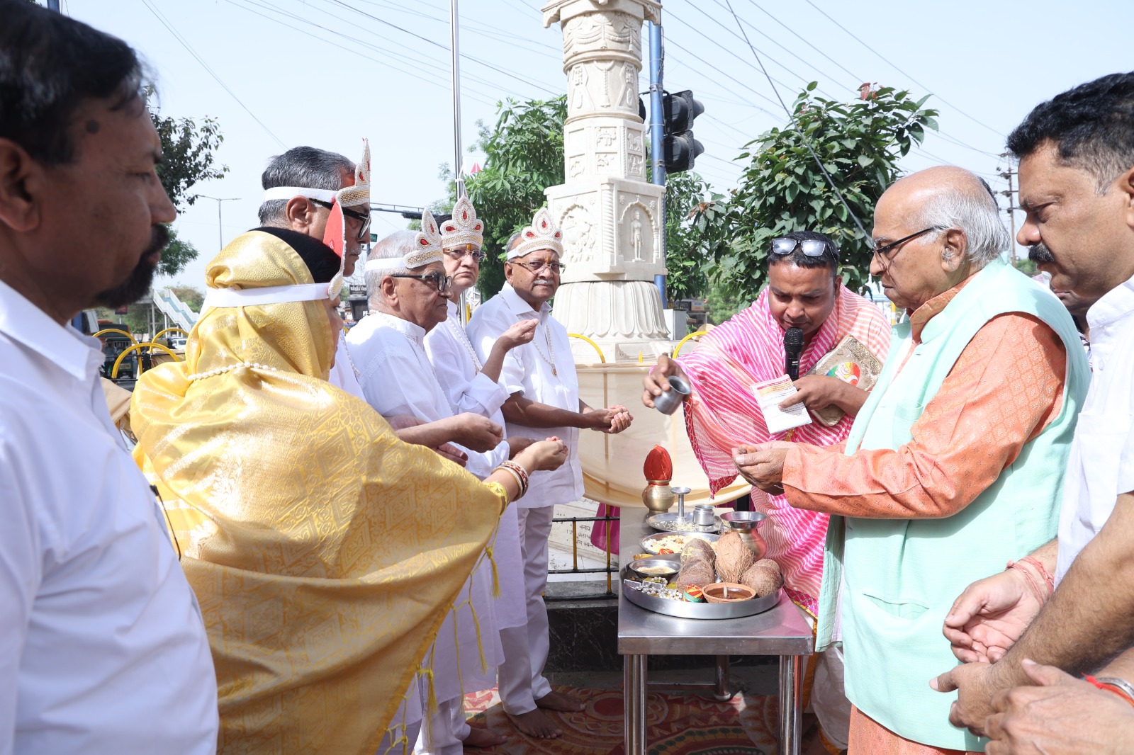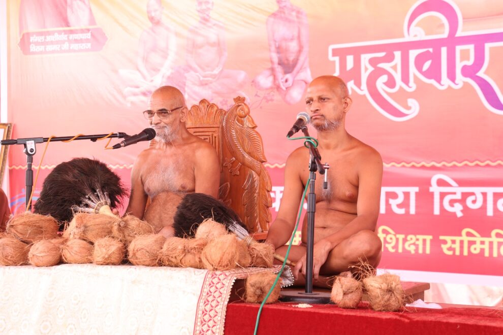 आगरा । श्री भगवान महावीर स्वामी जन्म कल्याणक महोत्सव एवं रथोत्सव ,जैन समाज की प्राचीनतम प्रतिनिधि संस्था आगरा ,दिगम्बर जैन परिषद के तत्वावधान में आचार्य श्री विज्ञान भूषण जी,युगल मुनि श्री शिवानंद जी महाराज एवं मुनि श्री प्रशमानंद जी महाराज,उपाध्याय मुनि श्री विहसंस सागर जी महाराज एवं मुनि श्री विश्व सम्य सागर जी महाराज के पावन सानिध्य में तीन दिवसीय कार्यक्रम दिनांक 20 अप्रैल से 22 अप्रैल तक बडे़ ही हर्षोल्लास के साथ एम.डी जैन इण्टर कॉलेज मैदान पर प्रारम्भ हुआ| तीन दिवसीय महावीर जयंती कार्यक्रम का शुभारम्भ अंहिसा स्तम्भ पर झंडारोहण के साथ किया गया। अंहिसा स्तम्भ पर ध्वजारोहण प्रदीप जैन पीएन सी द्वारा किया गया व दीप प्रज्वलन विमलेश जैन, द्वारा किया गया। मुख्य पाण्डाल पर ध्वजारोहण मंत्रोच्चारण के साथ विमल जैन ,सुनील जैन रविकांत जैन ,भोलानाथ जैन, सिंघई परिवार व हीरालाल बेनारा द्वारा किया गया व दीप प्रज्वलन वीरेंद्र शास्त्री ,अशोक जैन, संत निवास शिखर चंद जैन द्वारा किया गया। उसके उपरान्त विशाल धर्मसभा एम.डी. जैन इण्टर कॉलेज के मैदान पर कुण्डलपुर नगर में आयोजित की गयी। सर्वप्रथम आचार्य विज्ञान भूषण जी महाराज प० पू० युगल मुनि श्री शिवानंद जी महाराज एवं मुनि श्री प्रशमानंद जी महाराज, उपाध्याय श्री विहसंत सागर जी महाराज एवं मुनि श्री विश्वसम्य सागर जी महाराज का पाद प्रक्षालन एवं साथ ही श्रीफल भेंट किया।