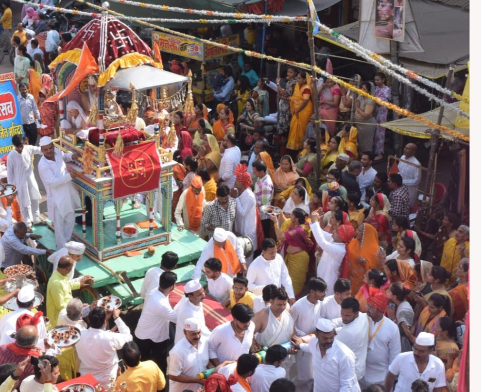 रथ में श्री जी का विहार हाथों से खींचकर किया भक्तों ने