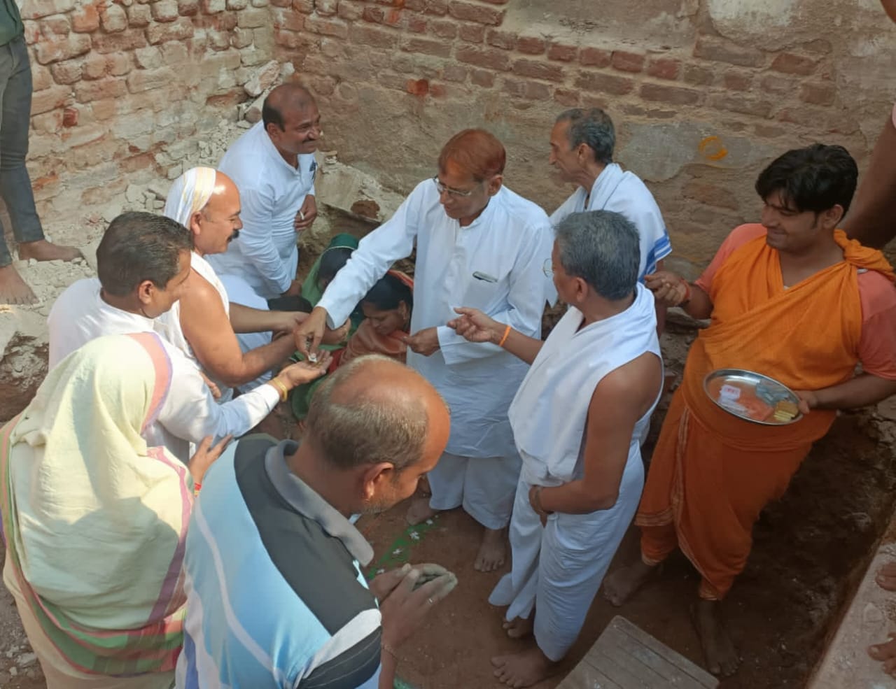 पुर्ण्याजक परिवार ने वेदिका की रखी आधारशिला