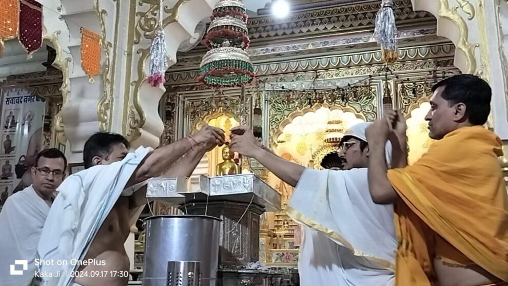 अतः ब्रह्मचर्य साक्षात धर्म है। केवल स्पर्श इन्द्रिय ही नही अपितु पांचों इंद्रियों के विषय मे निरोध का नाम ही ब्रह्मचर्य है।सन्मति जैन काका ने बताया कि आज के इस पावन अवसर पर प्रातः पार्श्वनाथ बड़ा मंदिर जी, संत निलय में पंचामृत अभिषेक आर्यिका माता जी के सानिध्य में किया गया। इस अवसर पर संत निलय में शांति धारा करने का सौभाग्य मनीष कुमार आशीष कुमार, आरिश शिवानी वंशिका चौधरी परिवार,श्रीमती रेखा राकेश खुशी, प्रिंसी जैन परिवार एवम कुणाल दीपाली मुस्कान रोजिल जैन परिवार को प्राप्त हुवा।
