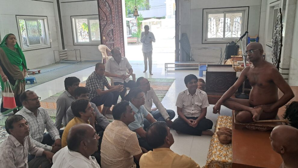 आचार्य श्री विनिश्चय सागर जी से वर्षायोग का निवेदन: इंदौर की क्लर्क कॉलोनी में विराजित हैं आचार्य
