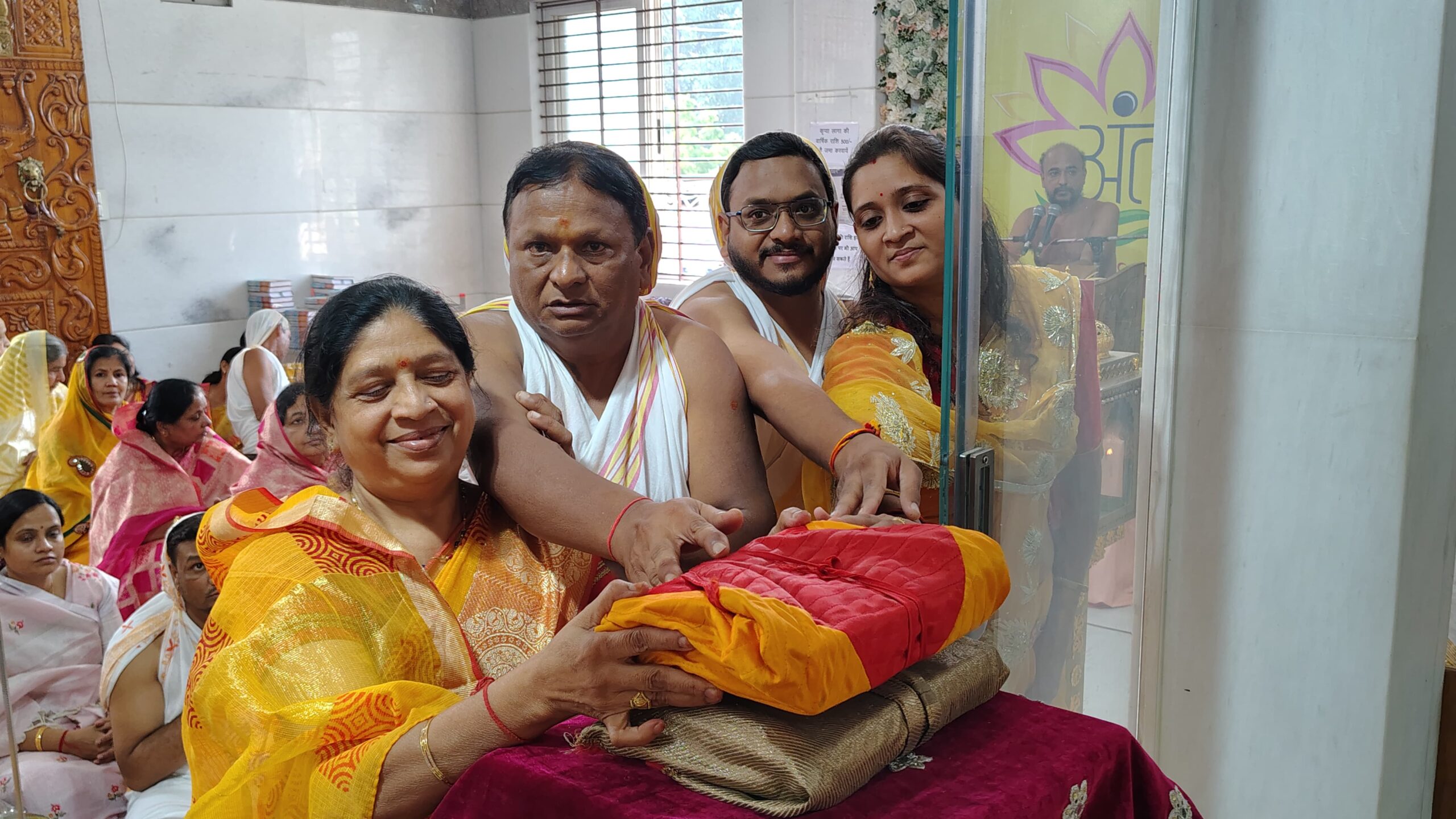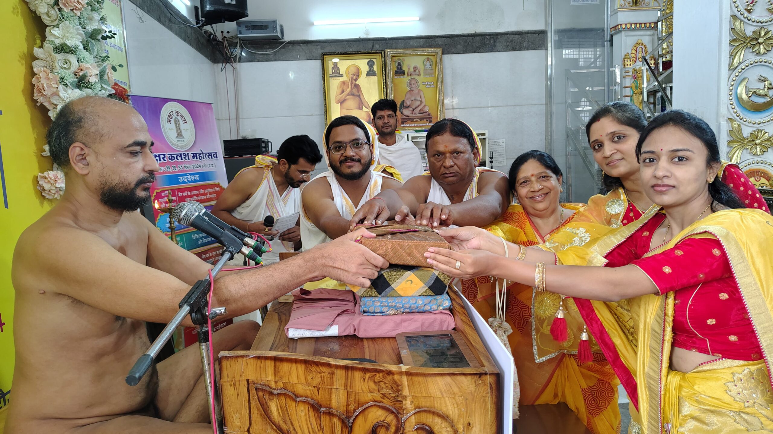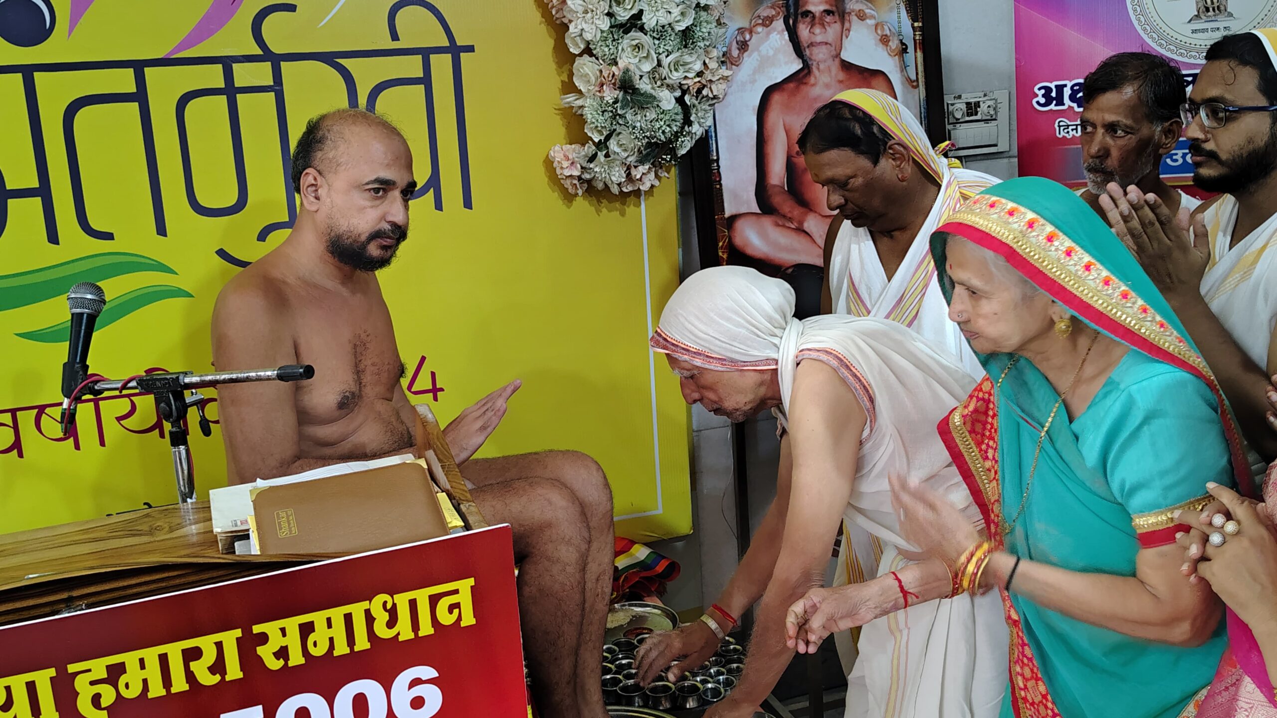 मुनि श्री की अष्ट द्रव्य से पूजन करने का लाभ सचिन शिवानी शौर्य जैन, ममता रत्नेश जैन, अशोक पालविया, सचिन ऋषभ जैन, अवी मुकेश जैन शुभ लाभ, मेघा अमित जैन, प्रशांत सरला पालविया, मीनाक्षी मनीष जैन प्रकृति, श्री पद्मप्रभु दिगंबर जैन वैभव नगर महिला मंडल को प्राप्त हुआ। अंतर्मुखी मुनि पूज्य सागर महाराज के गृहस्थ जीवन के माता-पिता, श्रीमती विमला और सोमचंद जैन का स्वागत समाज के सदस्य विनोद जैन, श्रीपाल जैन, पी. सी. जैन, डी. के. जैन (रिटायर्ड डीएसपी), रेखा संजय जैन, और कमलेश टीना जैन द्वारा किया गया।