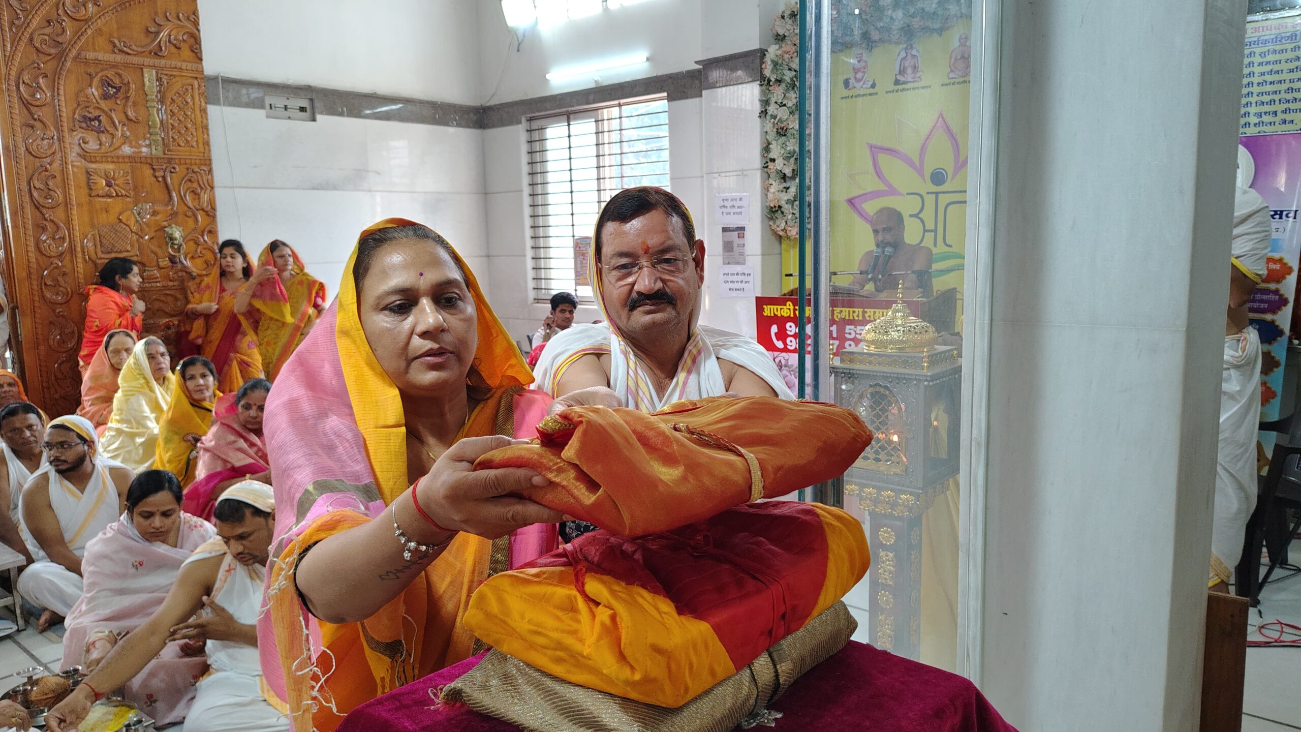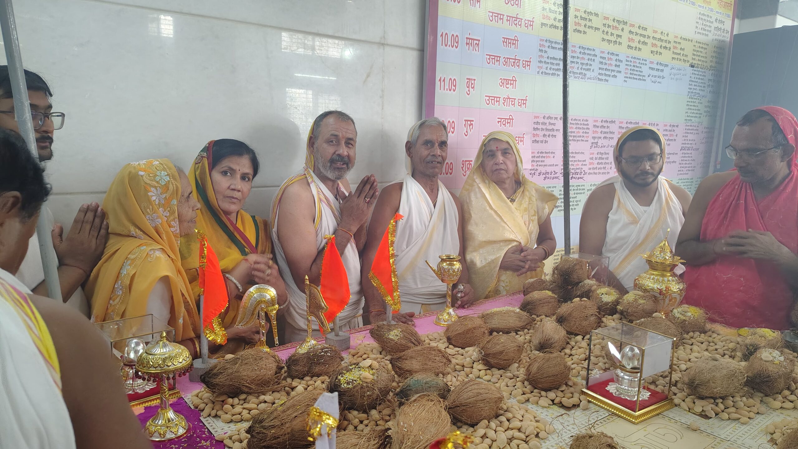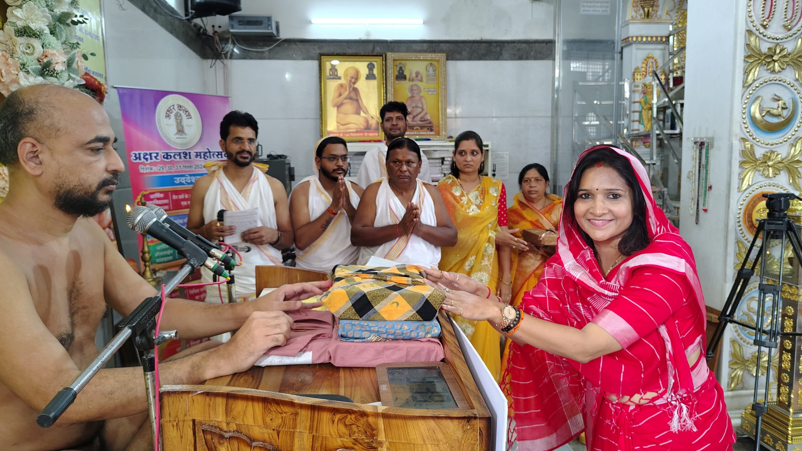 मुनि श्री की अष्ट द्रव्य से पूजन करने का लाभ सचिन शिवानी शौर्य जैन, ममता रत्नेश जैन, अशोक पालविया, सचिन ऋषभ जैन, अवी मुकेश जैन शुभ लाभ, मेघा अमित जैन, प्रशांत सरला पालविया, मीनाक्षी मनीष जैन प्रकृति, श्री पद्मप्रभु दिगंबर जैन वैभव नगर महिला मंडल को प्राप्त हुआ। अंतर्मुखी मुनि पूज्य सागर महाराज के गृहस्थ जीवन के माता-पिता, श्रीमती विमला और सोमचंद जैन का स्वागत समाज के सदस्य विनोद जैन, श्रीपाल जैन, पी. सी. जैन, डी. के. जैन (रिटायर्ड डीएसपी), रेखा संजय जैन, और कमलेश टीना जैन द्वारा किया गया।