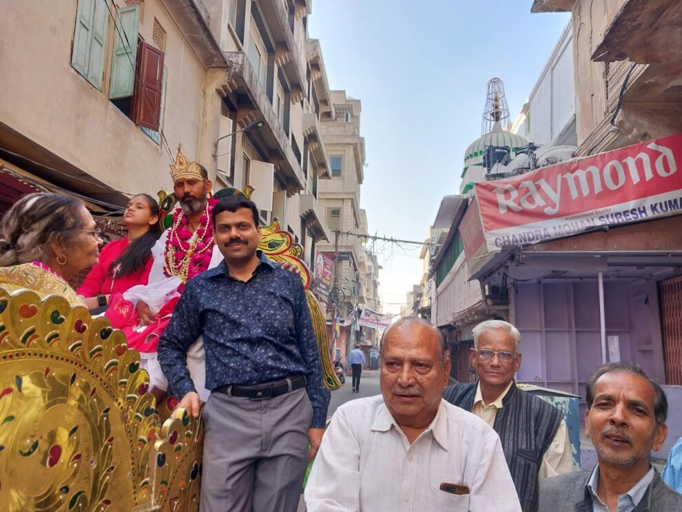 जयपुर। टोंक रोड पर तारों की कूंट स्थित सुदामा नगर के लक्ष्मी निवास, प्लाट नंबर 95 के रहने वाले ऋषभ जैन वैद्य चतुर्थ पट्टाधीश आचार्य भगवंत 108 सुनीलसागर गुरुदेव के आशीर्वाद एवं सानिध्य में जैनेश्वरी दीक्षा लेंगे। इससे पूर्व शनिवार को ऋषभ जैन वैद्य की बिंदौरी निकाली गई। इस मौके पर गोद भराई का आयोजन भी हुआ। राजस्थान जैन युवा महासभा जयपुर के प्रदेश महामंत्री विनोद जैन कोटखावदा ने बताया कि पूर्व में जौहरी बाजार एवं वर्तमान में तारों की कूंट निवासी स्वर्गीय कपूर चंद -नवरत्न देवी वैद्य के सुपौत्र, स्वर्गीय योगेन्द्र कुमार वैद्य, आशा देवी के सुपुत्र ऋषभ जैन वैद्य के जैनेश्वरी दीक्षा लेने के भाव हुए हैं।