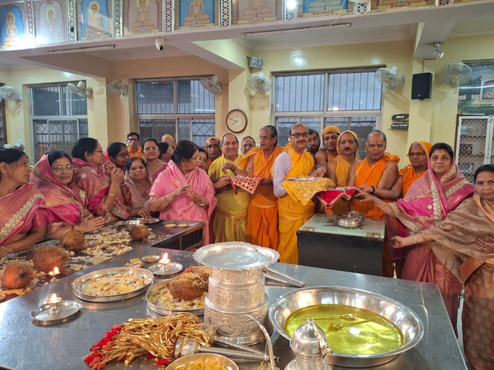 जयपुर। आचार्य श्री पुलक सागर जी महाराज के आर्शीवाद से इस वर्ष भी अष्टान्हिका महापर्व और होली के पावन अवसर पर मंदिर प्रबंध समिति के तत्वावधान में 2 मार्च प्रातः 6.45 बजे दिगम्बर जैन मंदिर में अभिषेक और विश्व शांति के लिए शांतिधारा की गई। इसके बाद पुलक मंच परिवार की ओर से मंदिर जी में केसर होली का आयोजन हुआ। पुलक मंच गायत्री नगर, महारानी फार्म की धर्ममंत्री अनिता बडजात्या ने बताया कि मंदिर प्रबन्ध समिति को पुलक मंच परिवार की राष्ट्रीय महामंत्री बीना टोंग्या, शाखा अध्यक्ष मंजू सेवावाली महामंत्री रेखा झांझरी के नेर्तत्व में पुलक मंच परिवार द्वारा 121ग्राम केसर प्रदान की गई एवं जिनशंरण तीर्थ, महाराष्ट्र में भी 21ग्राम केसर प्रदान की गई। इसके बाद पदाधिकारियों ने केसर तिलक लगाकर होली का यह पर्व मनाया।
