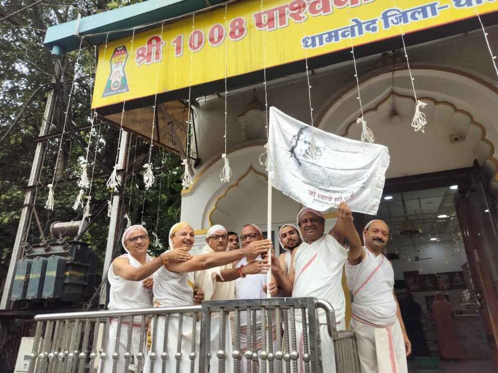 पथरिया में विराजित आचार्य श्री विशुद्ध सागरजी महाराज की प्रेरणा से धामनोद के जैन मंदिर में प्रथमाचार्य श्री शांतिसागरजी महाराज के समाधि दिवस पर सुंदर भावों से भक्ति के साथ अष्ट द्रव्य से अर्घ्य बोलकर चढ़ाया गया। ध्वजा लेकर मंदिरजी के मूल गेट के परिसर पर ध्वजावंदन हुआ। इस दौरान श्रावक-श्राविकाएं उपस्थित थी। यह जानकारी अध्यक्ष महेश जैन, राजेश जैन ने दी।