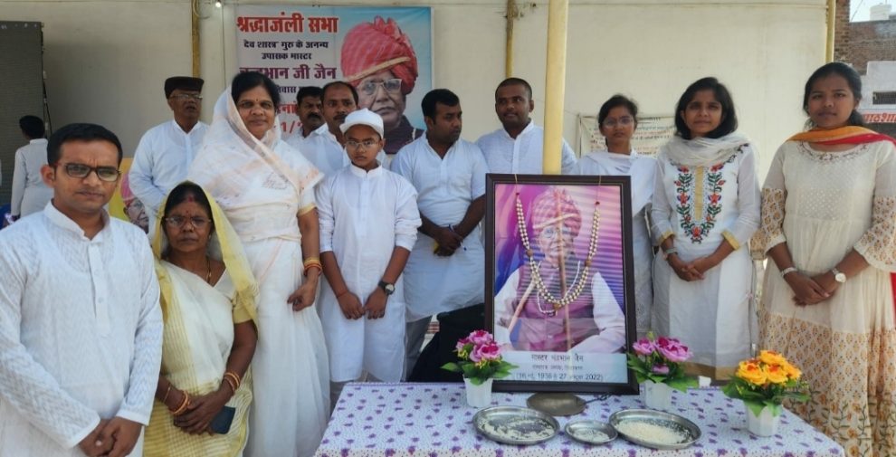 छतरपुर(रत्नेश जैन बकस्वाहा)। जिले के घुवारा नगर निवासी वरिष्ठ समाजसेवी नब्बे वर्षीय वयोवृद्ध मा. चन्द्रभान जैन ” नन्ना ” का गत दिनों हुये आकस्मिक निधन के बाद गत मंगलवार को उनके निज निवास घुवारा में हुई विशाल श्रद्धांजलि सभा में बुन्देलखण्ड सहित देश के अनेक ट्रस्ट, समिति व संस्थाओं के पदाधिकारी व प्रतिनिधियों एवं अनेक गणमान्य नागरिकों जनप्रतिनिधियों ने नम आंखों से अपनी भावांजलि अर्पित करते हुए उनके व्यक्तित्व कृतित्व का स्मरण कर अनुकरणीय बताया।