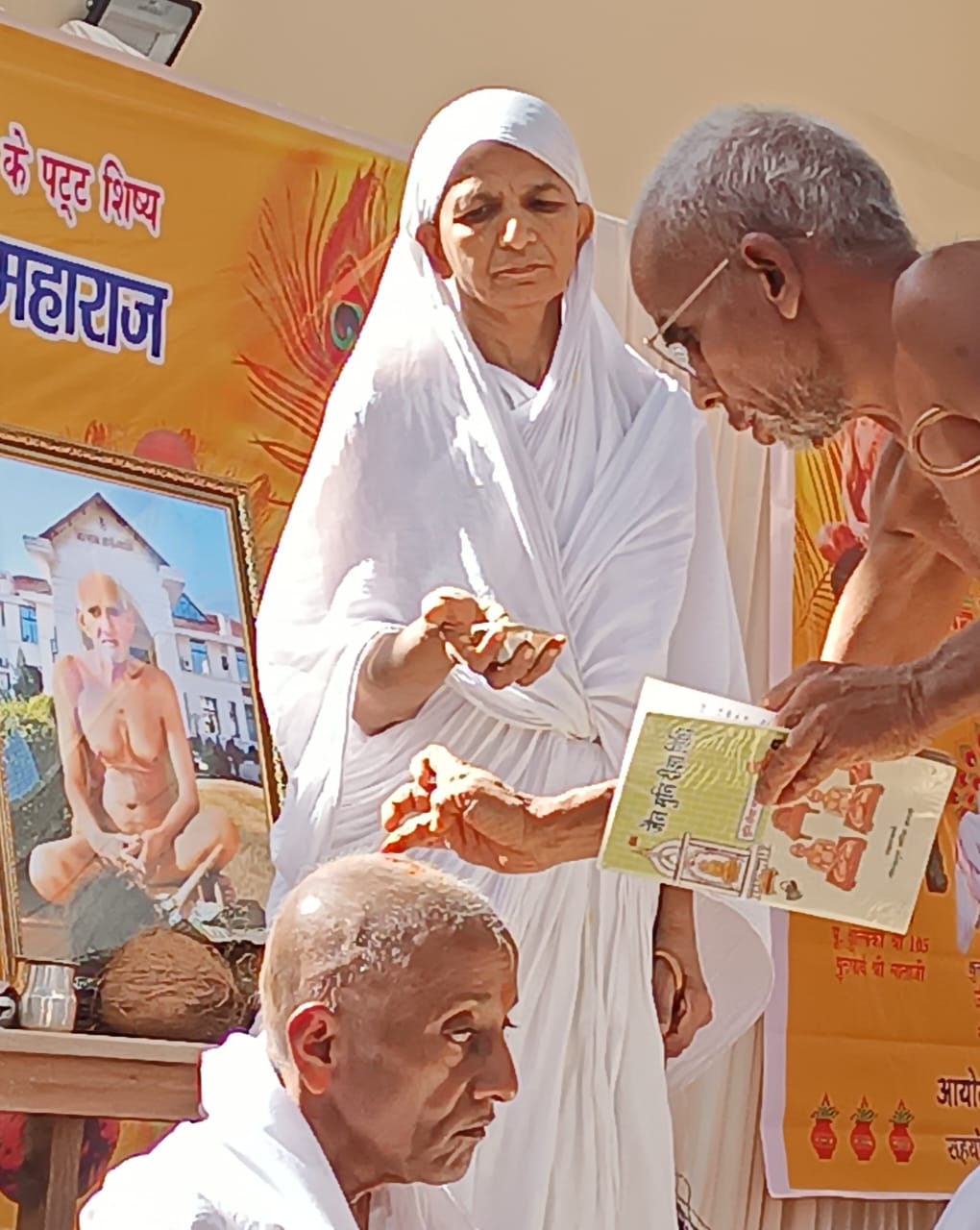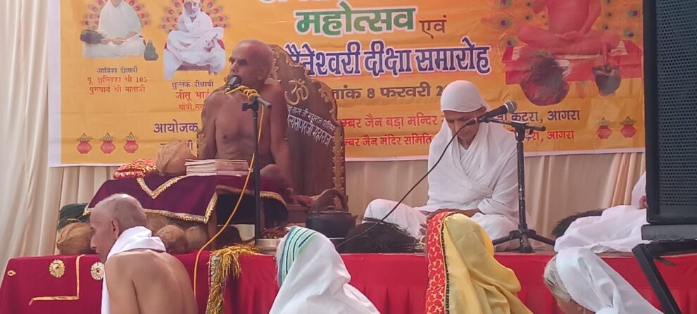 आगरा। मोती कटरा स्थित श्री पार्श्वनाथ दिगंबर जैन मंदिर, तार की गली परिसर में बुधवार को आचार्य श्री चैत्य सागर जी महाराज का 64 वां अवतरण दिवस महोत्सव एवं भव्य दीक्षा समारोह हर्षोल्लास के साथ मनाया गया। जिसमें आचार्यश्री ने सर्वप्रथम दीक्षार्थी जीतू भैया एवं आर्यिका दीक्षार्थी को क्षुल्लक दीक्षा एवं आर्यिका दीक्षा प्रदान कर मांगलिक क्रियाएं सम्पन्न कीं। इस दौरान सौभाग्यशाली भक्तों ने दो दीक्षार्थी को नवीन पिच्छी भेंट की।