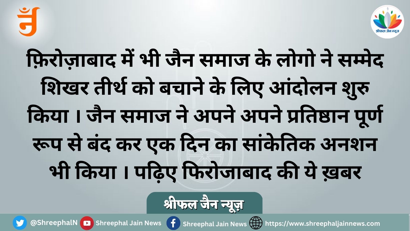 फिरोजाबाद में जैन समाज के बच्चे बुजुर्ग और युवा सभी लोग श्री पार्श्वनाथ दिगम्बर जैन मंदिर के बाहर तख़्त डाल कर बैठ गए । अनशन कर रहे विद्यार्थी परिषद के प्रदेश सह मंत्री रजत जैन ने सभा को सम्बोधित करते हुए कहा कि सरकार ये न समझें कि हम अहिंसक हैं तो शांत बैठे रहेंगे ।