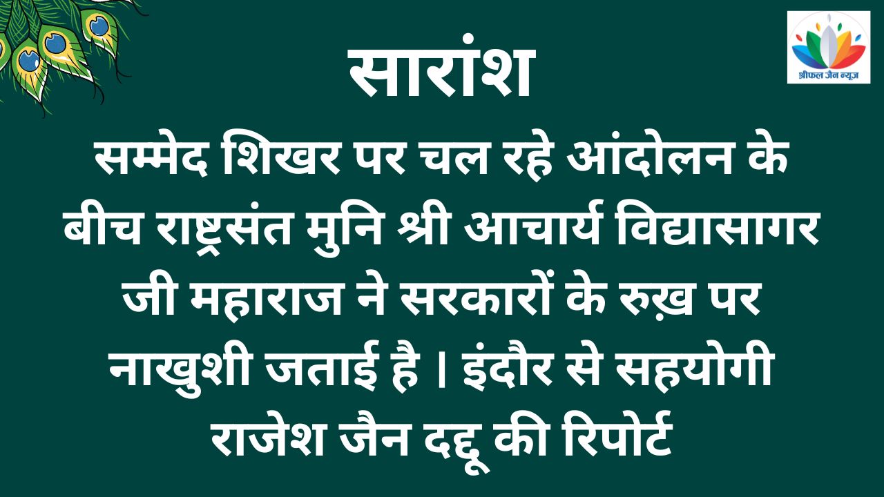 लेकिन ये सरकारें समाज के लिए कुछ नहीं कर रही है । आचार्य श्री ने सम्मेद शिखर आंदोलन को अहिंसक तरीके से और आगे बढ़ाने की जरूरत पर जोर दिया ।
