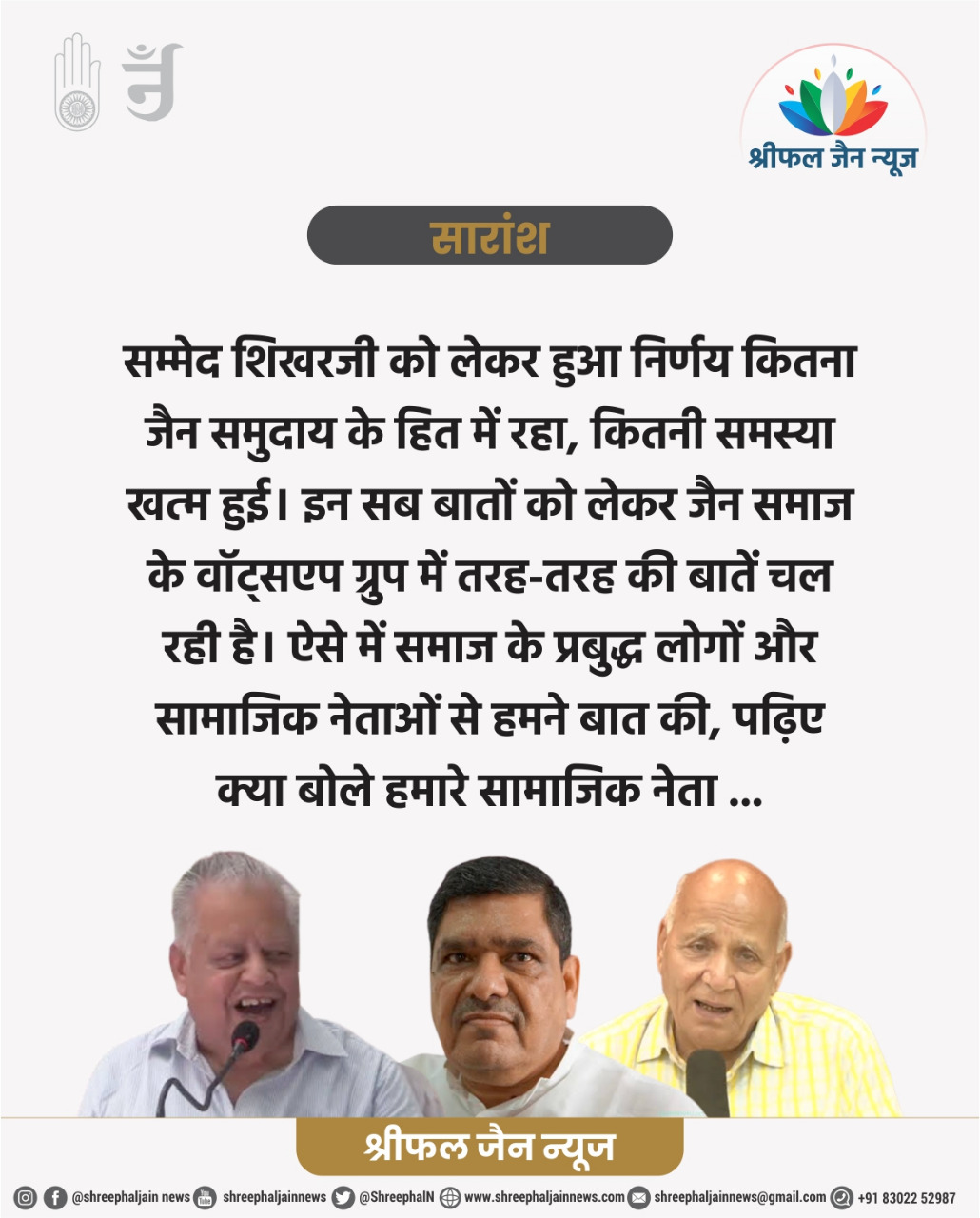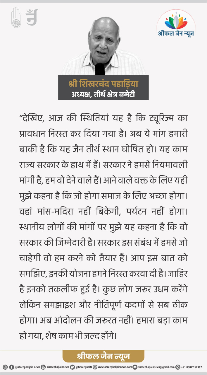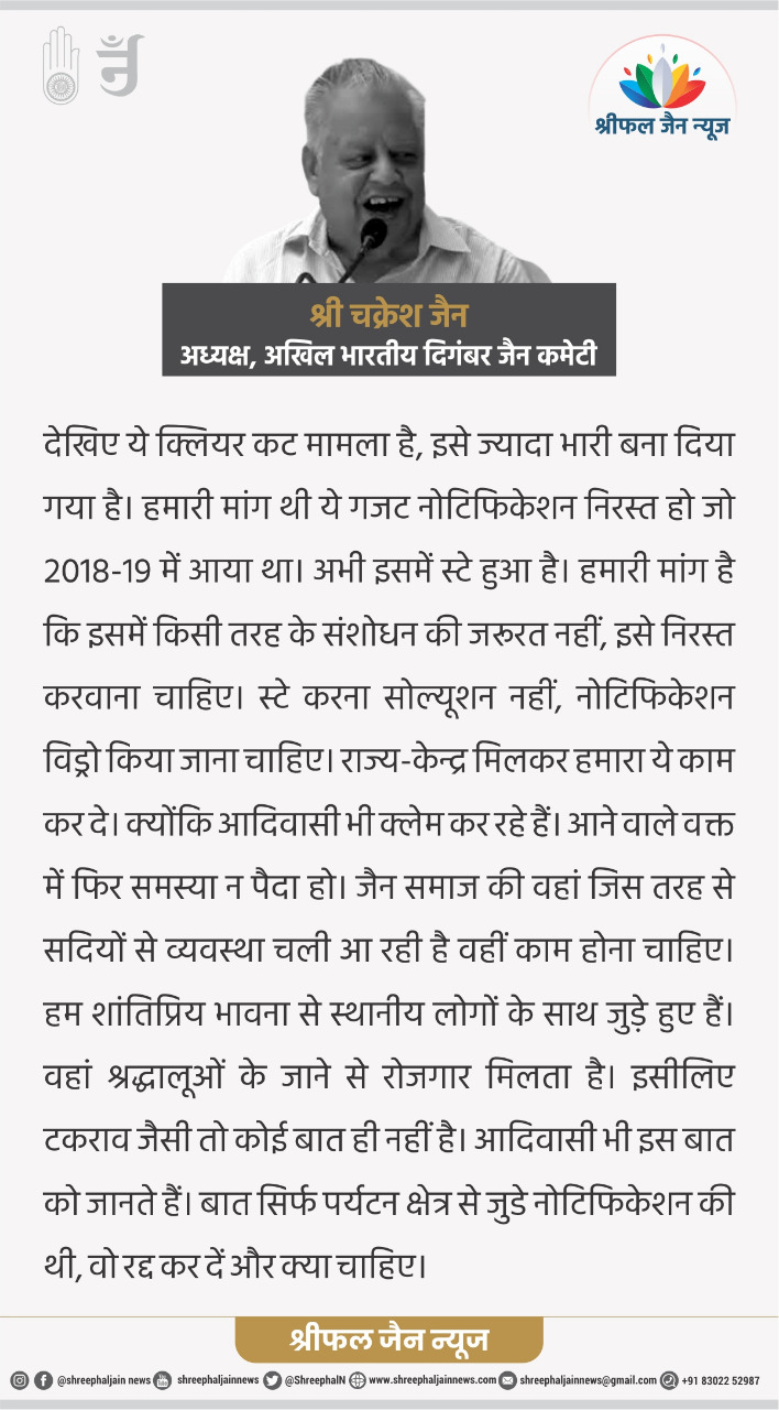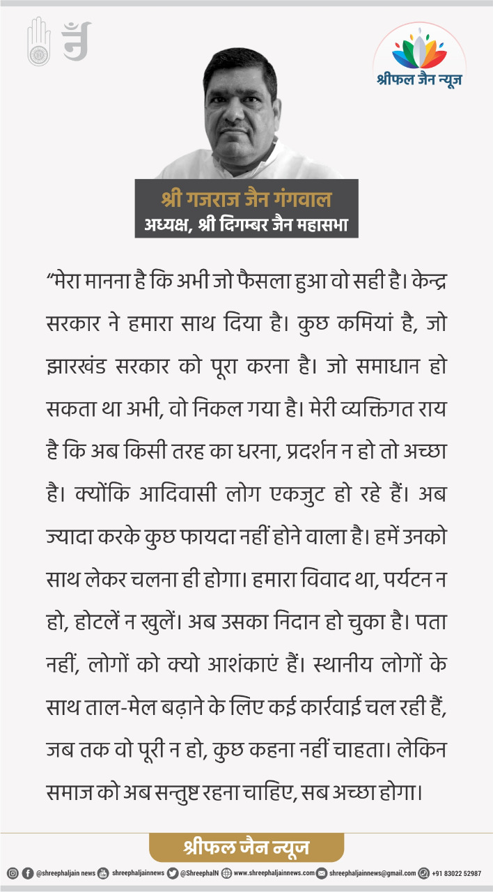 सम्मेद शिखर पर आया संकट टला, अब आंदोलन,उत्तेजना की जरूरत नहीं : जैन समाज के नेताओं से श्रीफल जैन न्यूज़ की सीधी बात