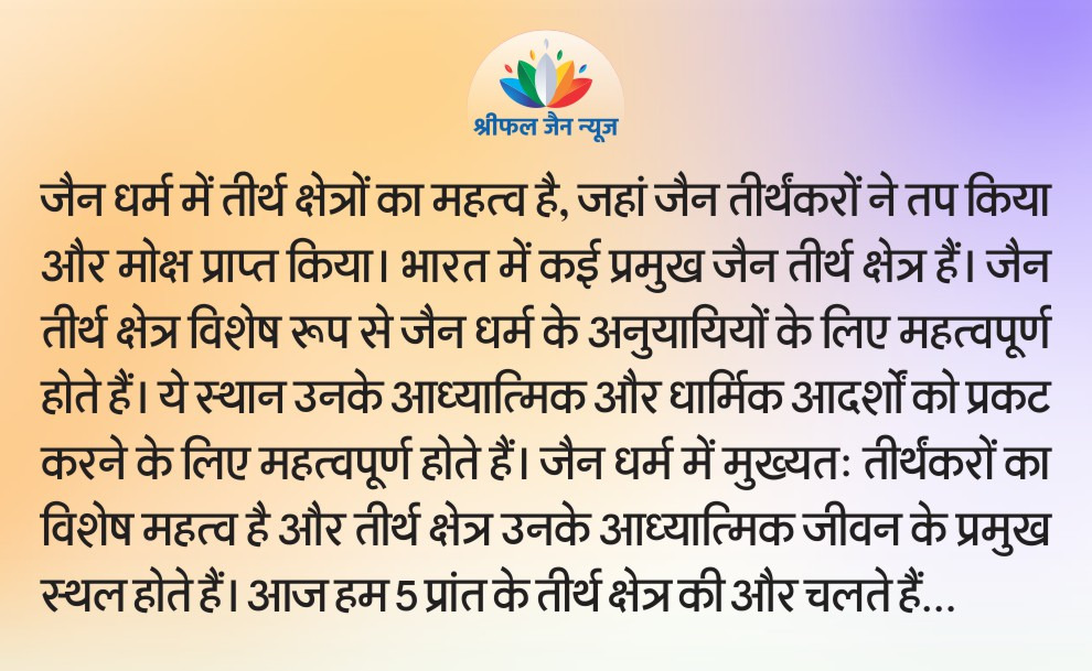 जैन तीर्थ क्षेत्रों की यात्रा करने को जैन धर्म में महत्वपूर्ण माना जाता है, और अनेक श्रद्धालु इन स्थलों पर अपने आध्यात्मिक साधना और समाधान के लिए यात्रा करते हैं। आंध्रप्रदेश, असम, हरियाणा,  झारखंड और ओडीशा के अतिशय क्षेत्रों की जानकारी दे रही हैं श्रीफल जैन न्यूज की संपादक रेखा जैन। पढ़िए यह विशेष आलेख….