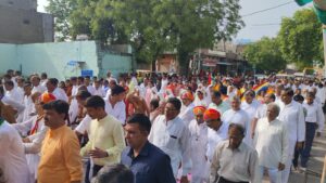 भवानीमंडी। आज एक ऐसे दृश्य की साक्षी बना भवानी मंडी, जिसके लिए देवलोक भी तरसता है। यह अवसर था आचार्य श्री वर्धमान सागर जी के राजस्थान प्रवेश का। यह पहली बार था कि जब कृषि उपज मंडी पूरी तरह से अभिनन्दन में नतमस्तक हुई। व्यापारियों के स्थान पर श्रद्धालुओं की शक्ति और भावनाओं से मंडी को सराबोर कर दिया। ऑरेंज सिटी के नाम से मशहूर मंडी पूरी तरह से केसरिया रंग में रंगी थी।