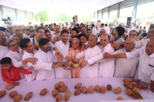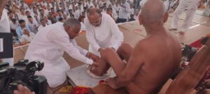 इस अवसर पर आचार्य श्री के पाद प्रक्षालन जल से श्री अशोक जी पाटनी ने , दूध से श्री कमल जी चाँदवाड़ जी ने , चंदन से श्री संजय पाटनी भवानी मंडी , दिलीपजी पण्ड्या ,पद्मावत रिज़ॉर्ट भवानी मंडी ने तथा पुष्पवर्षा श्री महेंद्र जी पाटनी किशनगढ़ वालों के द्वारा किया गया। सभी भक्ति के रस में भाव विभोर नजर आए। श्री महोत्सव समिति के कार्याध्यक्ष श्री विवेक काला ने सभी को धन्यवाद ज्ञापित किया एवं श्री महावीर जी महोत्सव को यशश्वी बनाने के लिये सभी से जुड़ने का आव्हान किया। भवानीमंडी के प्रथम नागरिक श्री कैलाश जी बोहरा ने भी गुरु चरणों में अपने भाव अर्पित किए। श्री अशोक जी पाटनी जी ने गुरु तपस्या पर अपने विचार रखे और भवानी मंडी की भूरि-भूरि प्रशंसा की । धरियावद के श्री हंसमुख जी शास्त्री ने आचार्य संघ के प्रति कृतज्ञता ज्ञापित की।