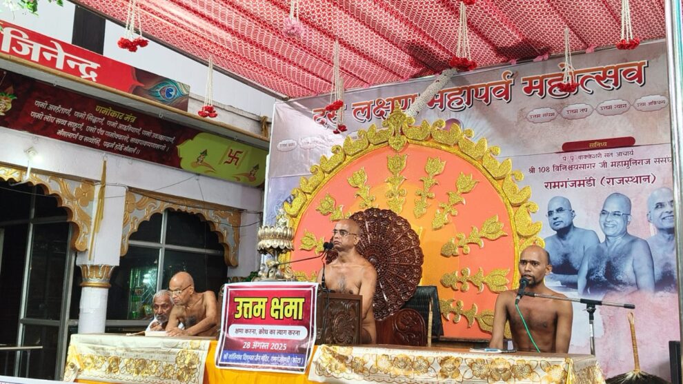 रामगंजमंडी। आचार्य श्री विनिश्चय सागर महाराज के सानिध्य में नगर में अनेक तपस्या हुईं। यहां तक कि बाहर से आए भक्तों ने भी तप आराधना की। इसी कड़ी में दमदम कोलकाता निवासी 60 वर्षीय संजय जैन सेठी ने 16 उपवास की तप साधना पूर्ण की। विगत एक माह से निरंतर गुरु चरणों में रहकर तन-मन-धन समर्पित करते हुए यह साधना पूर्ण की। इससे पूर्व वर्ष 2024 में उन्होंने आचार्य श्री के कोलकाता के प्रवास के दौरान दसलक्षण पर्व पर 10 उपवास की साधना पूर्ण की। उसके बाद ही उन्होंने मन बना लिया था, जहां भी आचार्य श्री रहेंगे, वहां रहकर 16 उपवास की साधना करूंगा।
