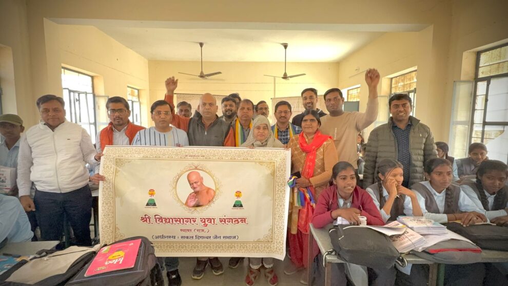 श्री विद्यासागरजी युवा संगठन और पीपुल फर्स्ट सीएसआर( People First CSR फंड (श्री सीमेंट स्टाफ) के संयुक्त प्रयास से राजकीय वरिष्ठ माध्यमिक विद्यालय लालपुरा एवं राजकीय वरिष्ठ माध्यमिक विद्यालय तीतरी के छात्र-छात्राओं को 108 संजीव डेस्क बुक सेट प्रदान किए। स्कूल प्राचार्य, समाजजन, विद्यार्थियों और गणमान्यजनों ने इस पहल की सराहना की। पढ़िए ब्यावर से यह खबर…
