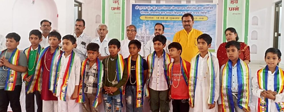 द्रोणगिरि (बड़ामलहरा)। तीर्थधाम सिद्धायतन में सोलहवां आवासीय बाल संस्कार शिक्षण एवं प्रवेश पात्रता शिविर का शुक्रवार को समापन सभा हुई। इसमें कार्यक्रम की अध्यक्षता जैनदर्शनाचार्य पं. राजकुमार शास्त्री ने की एवं सभा के मुख्य अतिथि बड़ामलहरा तहसीलदार आलोक जैन, विशिष्ट अतिथि घुवारा तहसीलदार कपिल शर्मा रहे। सभा में ट्रस्ट उपाध्यक्ष डॉ. गुलाबचंद जैन, मंत्री प्रद्युम्न फौजदार , शिविर ध्वजारोहण कर्ता सेवकचन्द्र जैन, हेमचंद जैन, अखिल भारतीय जैन युवा फैडरेशन के महामंत्री नीरज दिल्ली एवं विद्वत् क्रम में पं. कमलेश शास्त्री सागर, शिविर के सह-संयोजक पं. स्वतंत्र शास्त्री, पं. नीलेश शास्त्री, पं. पंकज शास्त्री बड़ामलहरा, विदुषी विपाशा ,पं. शाश्वत शास्त्री बड़ामलहरा, पं. प्रवीण शास्त्री बड़ामलहरा, पं. आदित्य शास्त्री सिद्धायतन, विदुषी लब्धि शास्त्री घुवारा उपस्थित रहे।