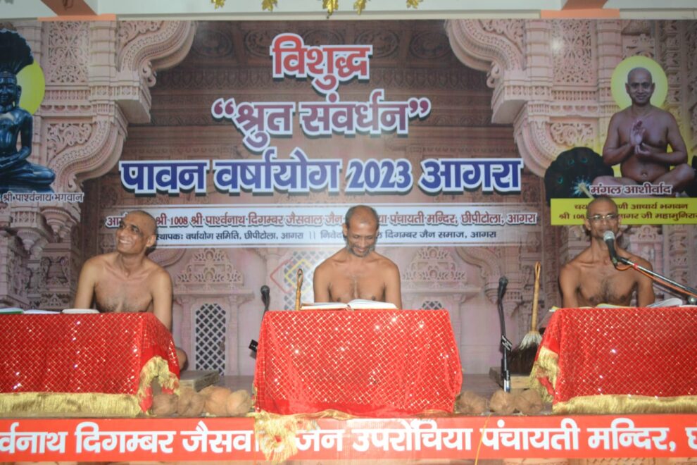 आगरा। निर्मल सेवा सदन छीपीटोला में विराजमान आचार्य श्री विशुद्ध सागर जी महाराज के शिष्य परम पूज्य मुनि श्री 108 साक्ष्य सागर जी महाराज, मुनि श्री 108 योग्य सागर जी महाराज जी संसघ के सानिध्य में मुनि श्री 108 निवृत सागर जी महाराज का दूसरा मुनि दीक्षा समारोह धूमधाम से मनाया गया l सबसे पहले दीप प्रज्वलन किया गया। इसके बाद महिला मंडल द्वारा सुन्दर मंगलाचरण किया गयाl