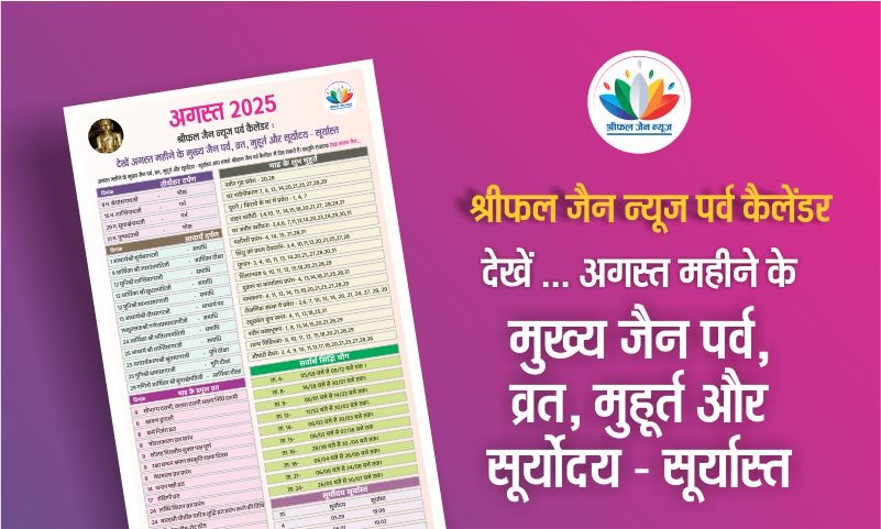 अगस्त महीने के मुख्य जैन पर्व, व्रत, मुहूर्त और सूर्योदय – सूर्यास्त आप हमारे श्रीफल जैन पर्व कैलेंडर में देख सकते हैं। प्रस्तुति संपादक रेखा संजय जैन….