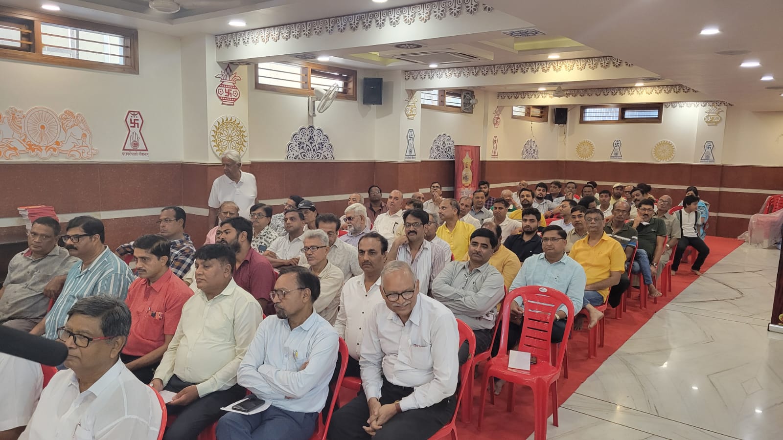 आगरा। कमला नगर स्थित श्री महावीर दिगंबर जैन मंदिर में पावन वर्षायोग के लिए पधारे मेडिटेशन गुरु उपाध्यायश्री विहसन्त सागर जी महाराज ससंघ के मंगल सानिध्य में 5 अगस्त को आगरा नगर के समस्त दिगम्बर जैन मन्दिरों वं संस्थाओं के पदाधिकारियों की संगोष्ठी अर्पितमय पावन वर्षायोग समिति एवं ग्रेटर कमलानगर के तत्वावधान में मन्दिर सुरक्षित, समाज व्यवस्थित विषय पर आचार्य श्री विद्यासागर संत निलय पर आयोजित की गई। संगोष्ठी का शुभारंभ स्वस्ति बहु मन्डल की महिलाओं ने मंगलाचरण के साथ किया। इसके बाद में उपाध्यायश्री ने संगोष्ठी को संबोधित करते हुए कहा कि सुरक्षा की दृष्टी से हर मन्दिर समस्त प्रतिमाओं उन पर लिखी प्रशस्ति, मन्दिर का इतिहास, मन्दिर की प्रॉपर्टी के दस्तावेज आदि का अच्छी प्रकार से रिकोर्ड एवं फोटो एलबम बनावें व मन्दिर के स्ट्रॉन्ग रूम मे सभी दस्तावेज रखें व एक एक कॉपी पदाधिकारी रखें। सौ वर्ष से प्राचीन प्रतिमा या शास्त्र होंवे तो पुरातत्व विभाग मे भी अवश्य रिकोर्ड कराएं। मन्दिरो में सी सी टीवी कैमरे अवश्य लगावें व स्थानीय पुलिस प्रशासन से मिलते रहें, मन्दिरों को सोसाइटी एक्ट अथवा ट्रस्ट मे रजिस्टर कराकर कानूनी रूप से इन्कम टैक्स विभाग में भी पंजीकृत करावें एवं समय के अनुसार रिटर्न भरें। उन्होने आगे कहा कि मन्दिर में दान एफ डी बढ़ाने के लिए न लें। जो दान आए उसे मन्दिर के विकास में खर्च करें अथवा कोई चैरिटेबल कार्य करें मन्दिर मे उपलब्ध, पूजा सेट,धोती दुपट्टे,चौकी मेज,चटाई की इनवैन्टरी बनाएं व नगर में किसी भी मन्दिर में कोई आयोजन हो तो उक्त सामान को एक दूसरे को दें। उन्होंने हर शहर मे सभी मन्दिर मिलकर एक सेंट्रलाइज्ड फन्ड बनाने का आह्वान करते हुए कहा कि जब कभी कोई नये मन्दिर बनने अथवा रिपेअर की बात हो तो इस फन्ड का इस्तेमाल करें। उन्होंने मन्दिर मैनेजमेंट को कहा कि अगर समय न हो तो पद छोड़ें और दूसरे योग्य को आने दें। उन्होने कहा कि समाज मे अगर किसी कारण पुरुषों पर समय नहीं तो महिलाओं को कमेटी मे आगे आने दें। संगोष्ठी का संचालन मनोज जैन बाकलीवाल द्वारा किया गया। वर्षायोग समिति के मुख्य संयोजक मनोज जैन बाकलीवाल ने बताया कि 18 अगस्त को विशाल युवा सम्मेलन और 25 अगस्त को विशाल महिला सम्मेलन का भव्य आयोजन उपाध्याय श्री विहसंतसागर जी महाराज ससंघ के मंगल सानिध्य में होगा।
