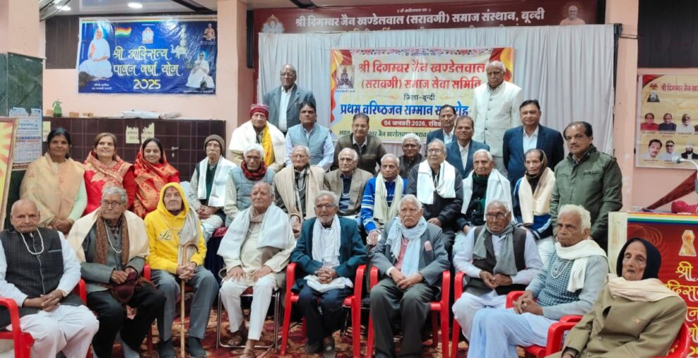 दिगंबर जैन खंडेलवाल सरावगी समाज सेवा समिति जिला बूंदी की ओर से चौगान जैन मंदिर आश्रम हॉल में वरिष्ठजन सम्मान समारोह रखा गया। कार्यक्रम में समाज के 75 वर्ष से अधिक महिला व पुरुष का सम्मान किया गया। बूंदी से पढ़िए, यह खबर…